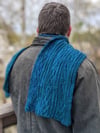 The Ten Mile River loops through my city. It powered several mills before they were electrified. I’ve seen mink, heron, carp and kingfishers in it. The Ten Mile River scarf is a pleasant pattern with slightly quirky stitches. The resulting object is solid, yet drapes. Interesting to crochet, but plain enough to wear everyday. The Arroyo yarns’ colors were a joy to see sliding by, like happy water on a clear day.