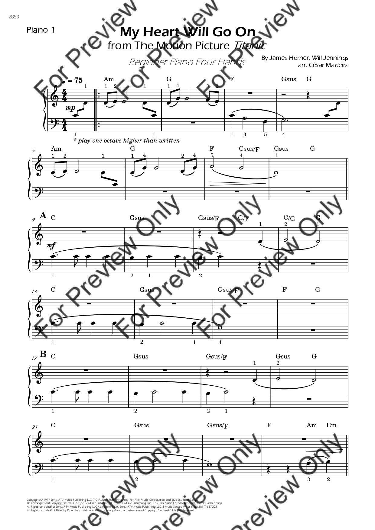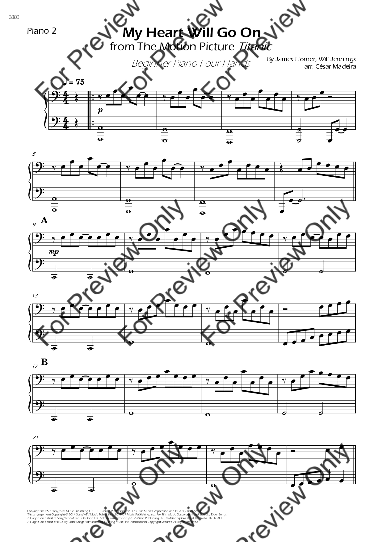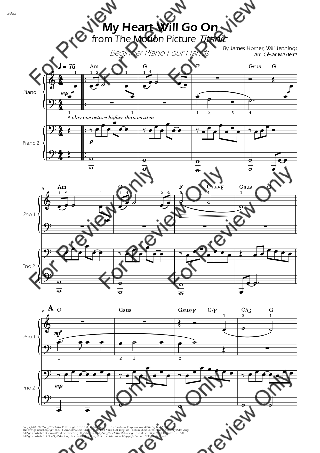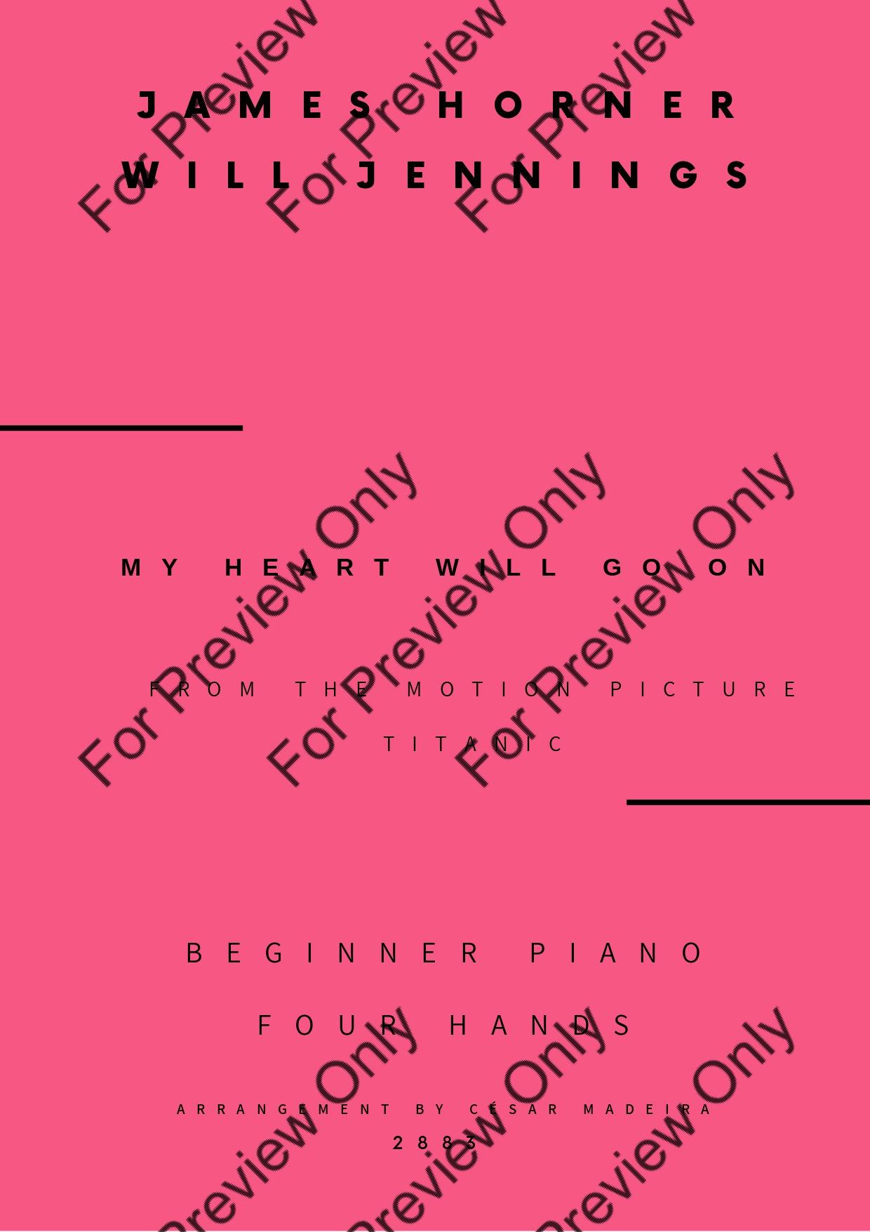 My Heart Will Go On from Titanic. Arrangement for Beginner/Easy Piano Four Hands. With Full Score and Individual Parts. Have fun!