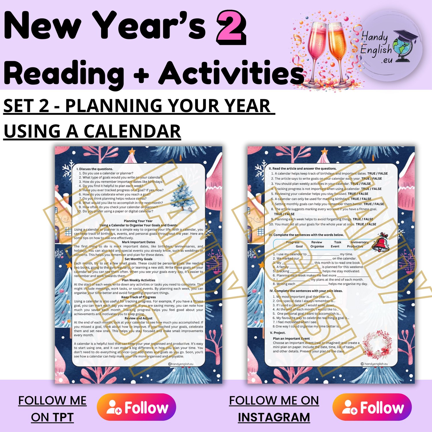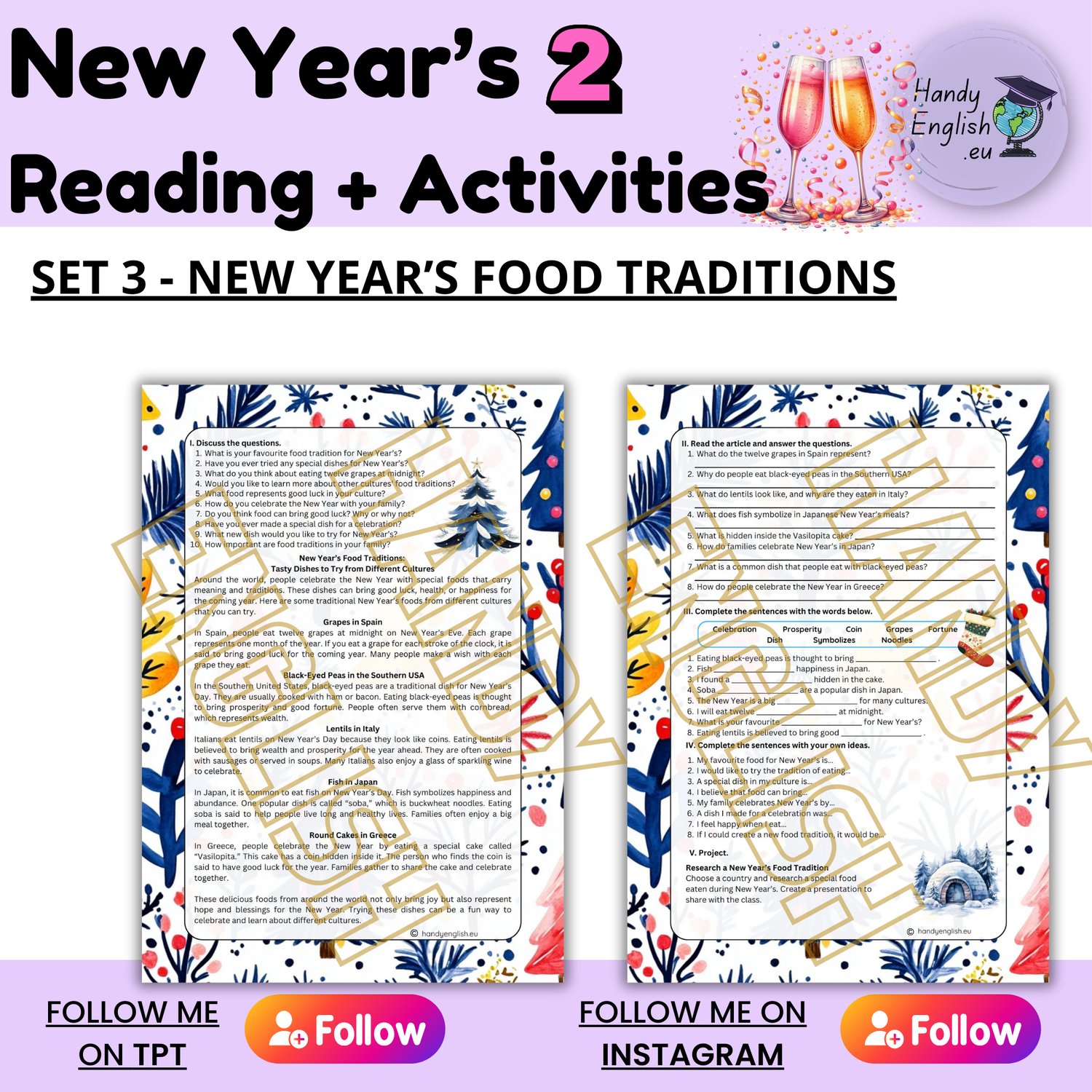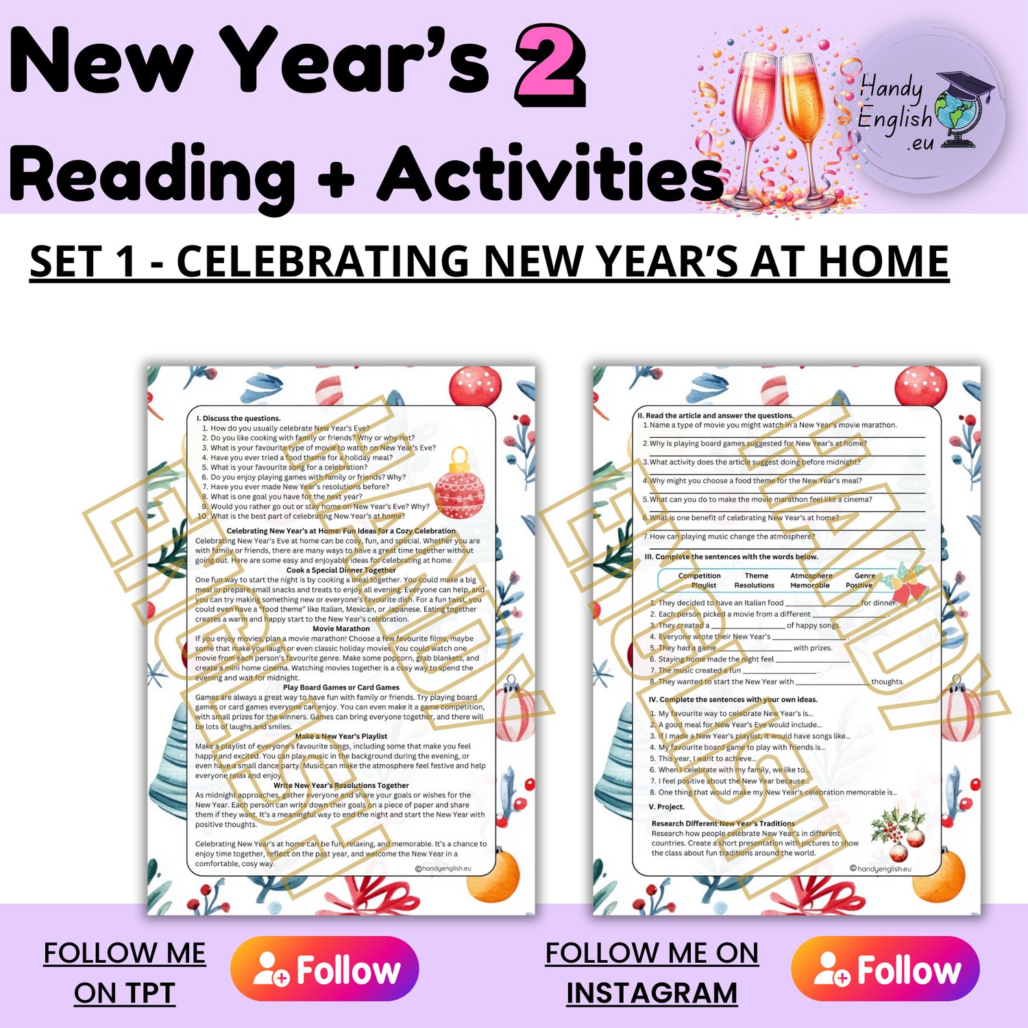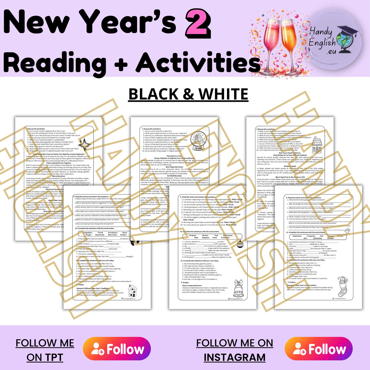 This product includes 3 New Year's reading sets for ELL/ESL classes which can be used as back-to-school projects, reading comprehension activities, speaking activities, or assignments.