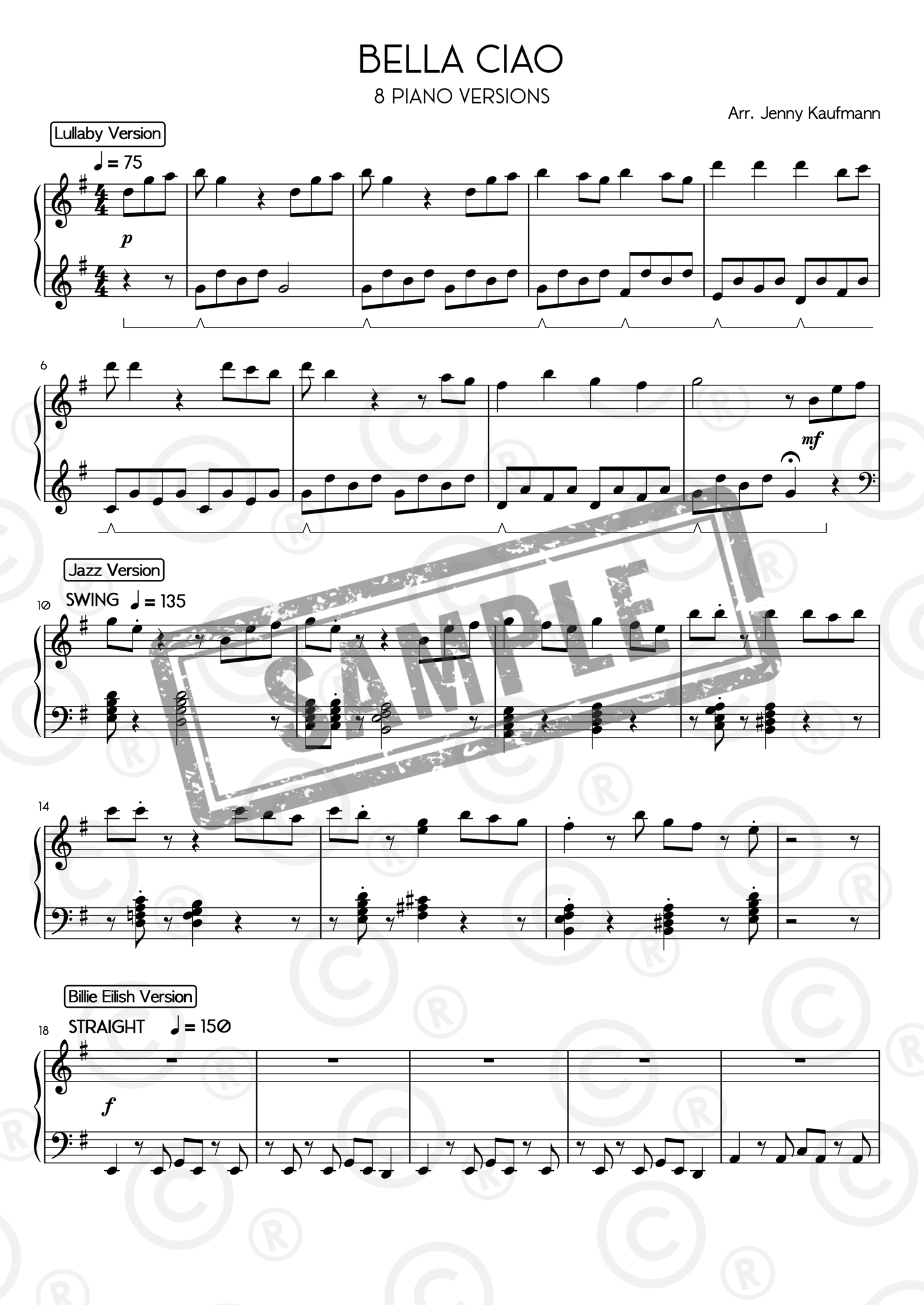 Piano sheet music and midi – Bella Ciao in 8 different versions