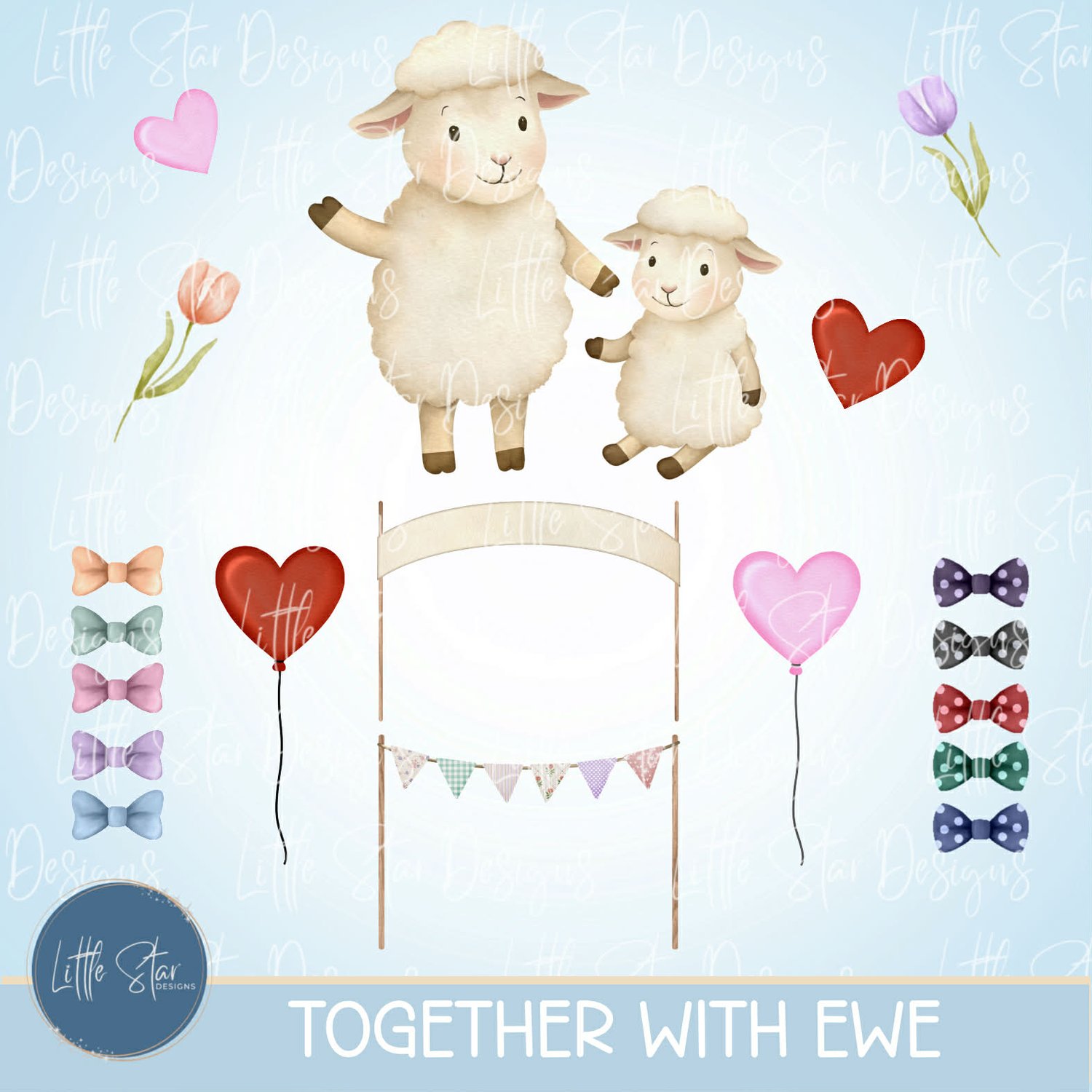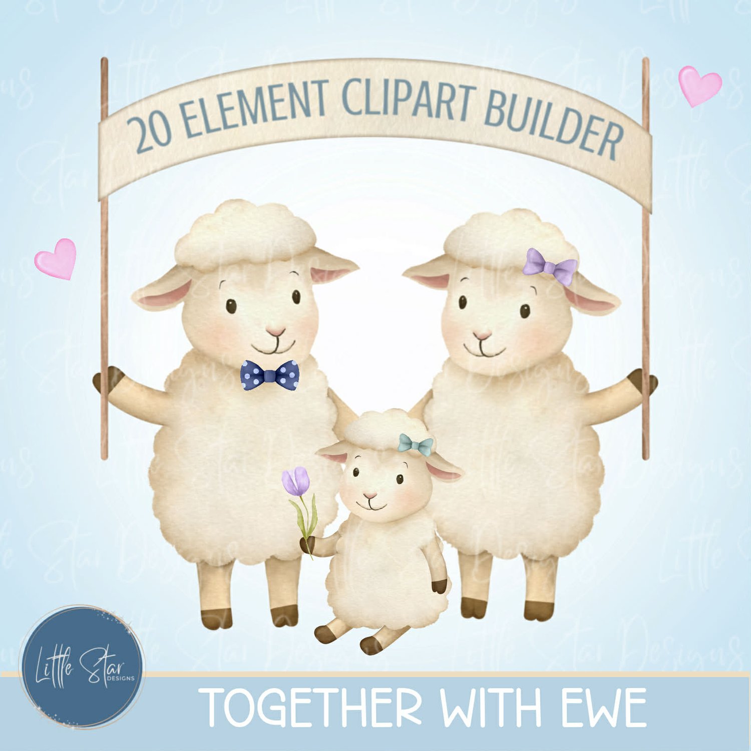 This is a high-quality hand drawn (300dpi PNG) clipart set digital download of my original artwork, titled “Together with Ewe”, designed for sublimation and print.