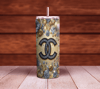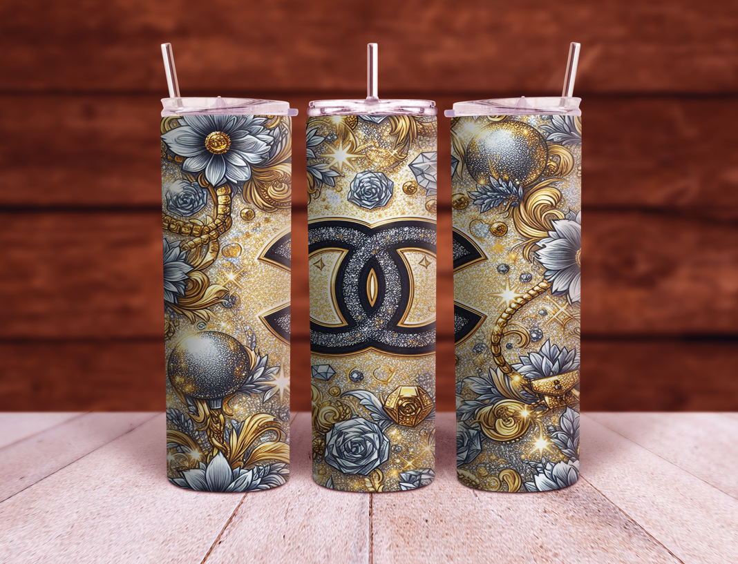 Chanel Gold Blue Floral 20oz and 30oz Sublimation Tumbler Wrap PNG