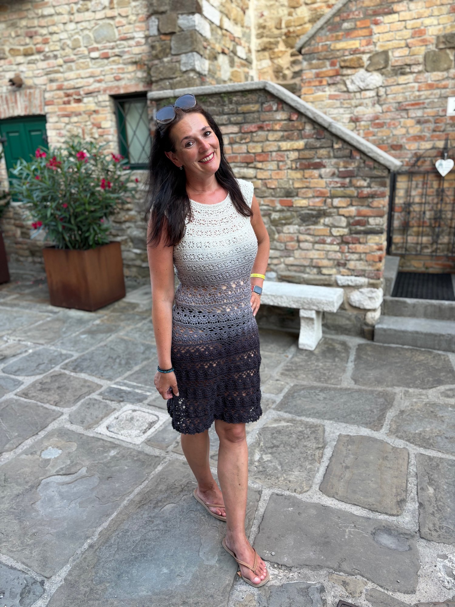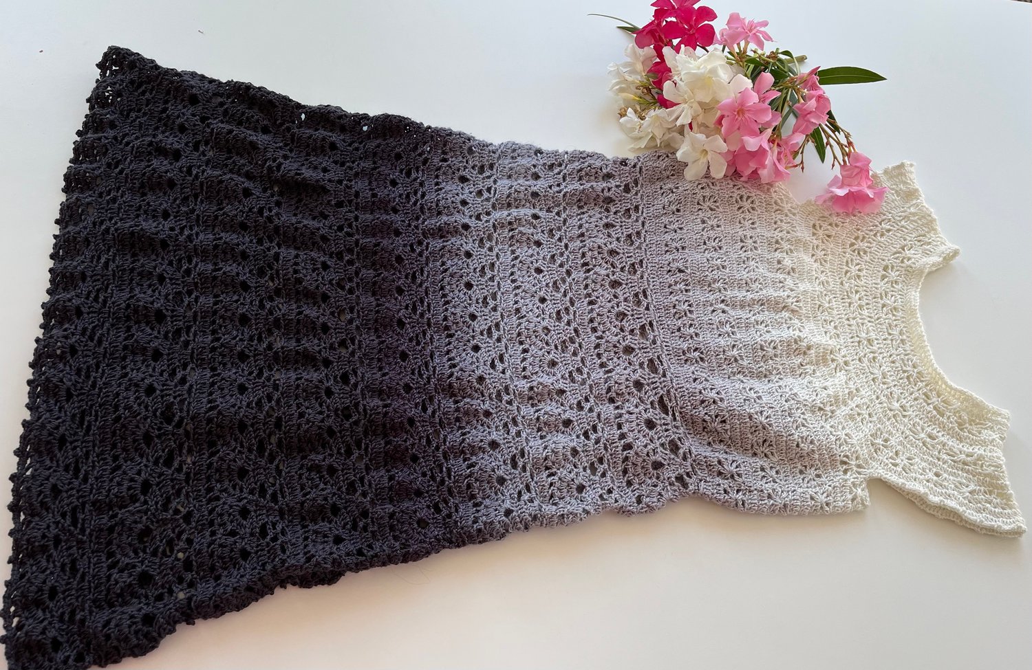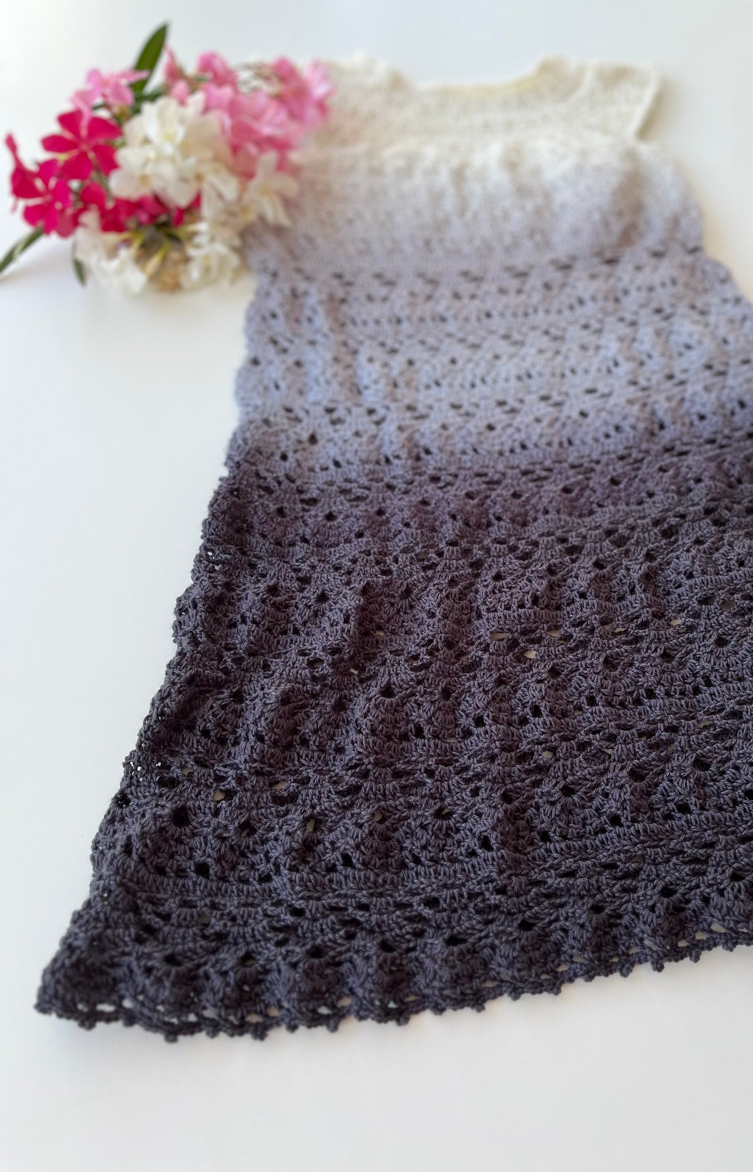 Crafted with the beautiful Dolly Ombre and Dolly yarn, this tunic / dress showcases stunning color transitions that unfold as you crochet, adding depth and visual interest to your finished garment.