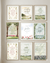 - Soft watercolor florals + nature-inspired designs