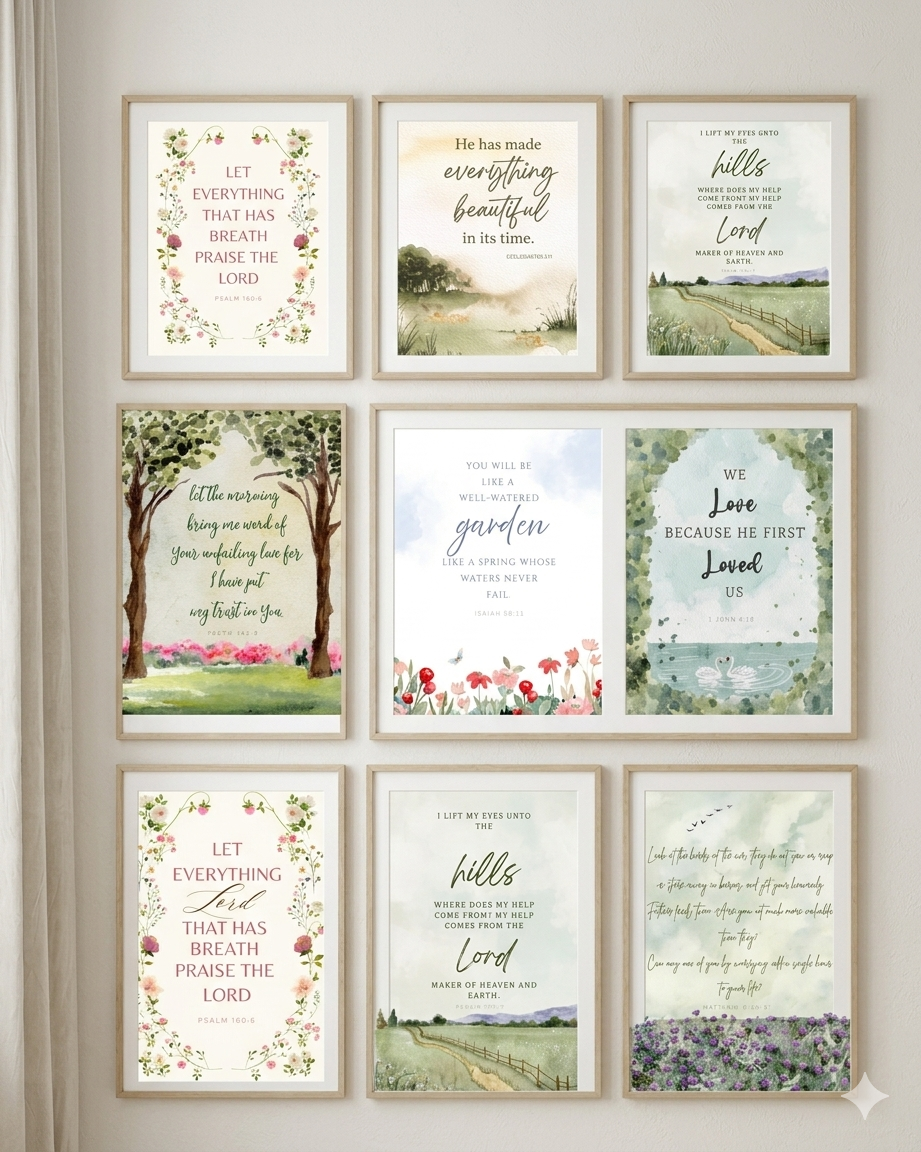 This expanded collection features soft florals, serene landscapes, and uplifting Bible verses designed to bring calm, beauty, and encouragement into your everyday spaces. Perfect for creating a cohesive gallery wall or styling throughout your home.