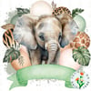 GREEN Celebration Safari Elephant PNG/Clipart. No Text