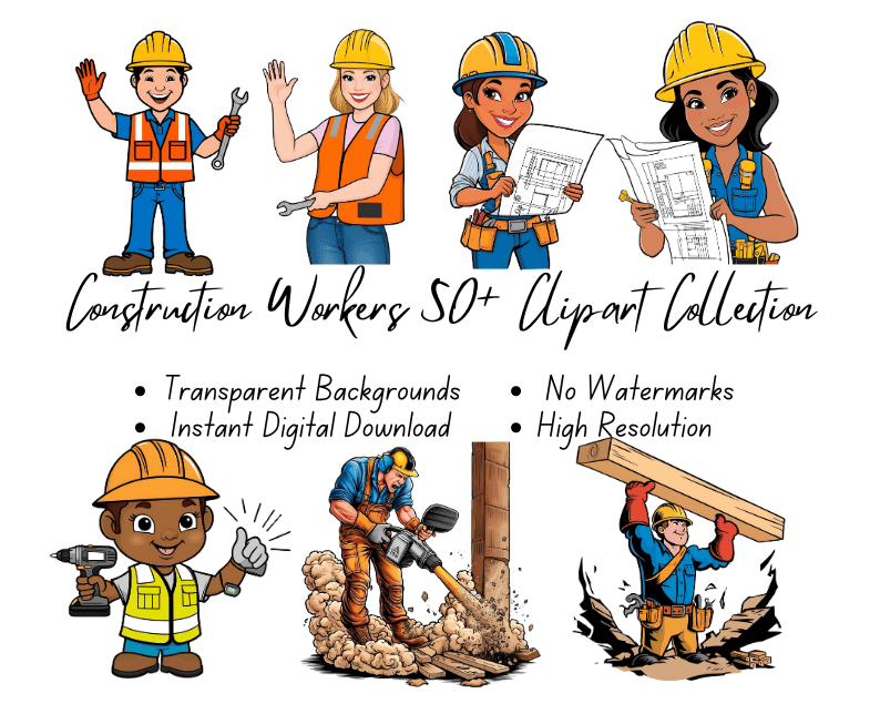 Construction Workers 50+ Clipart Collection | High-Resolution Digital Printables | Instant Download | No Watermark