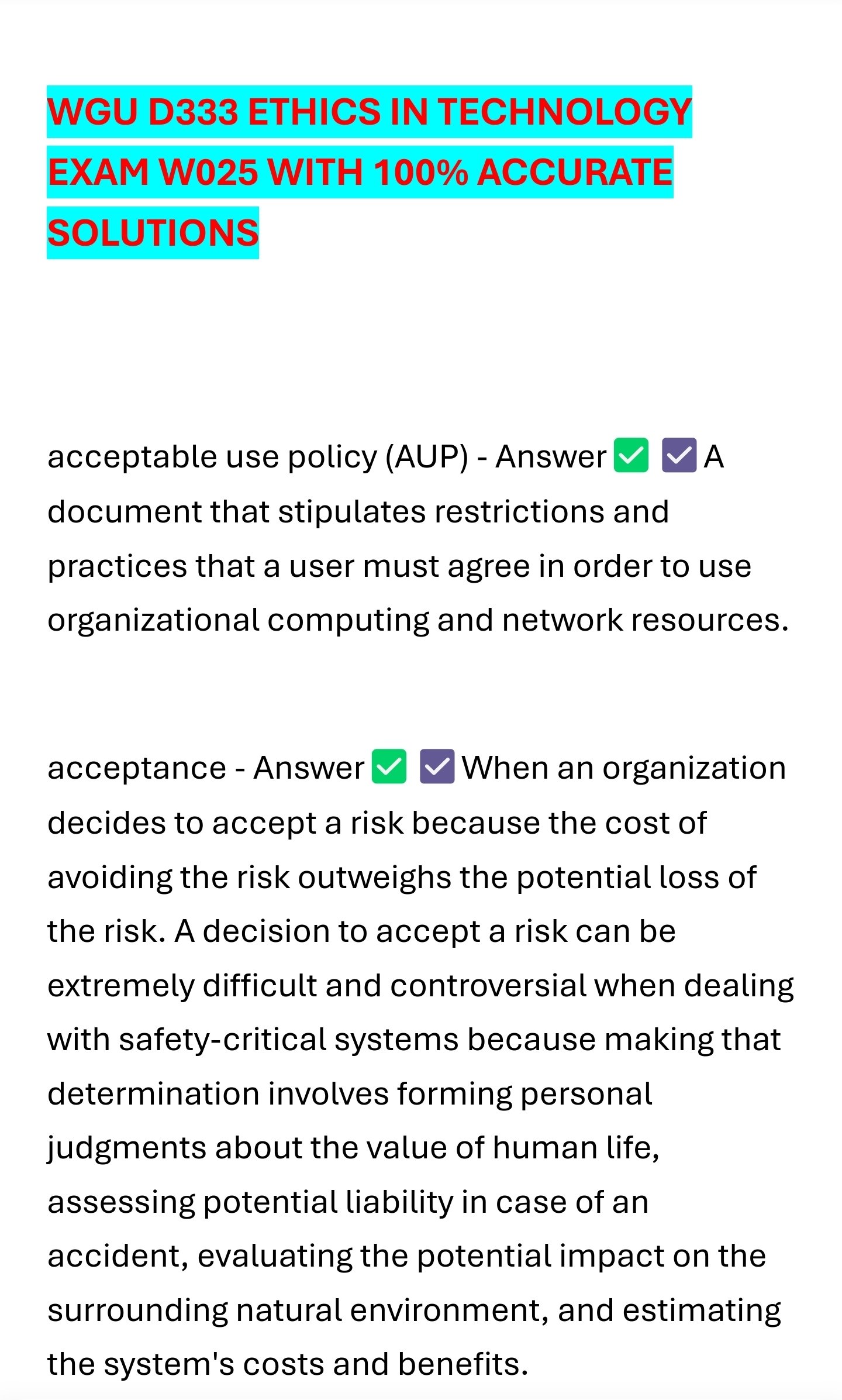 WGU D333 ETHICS IN TECHNOLOGY EXAM W025 WITH 100% ACCURATE SOLUTIONS