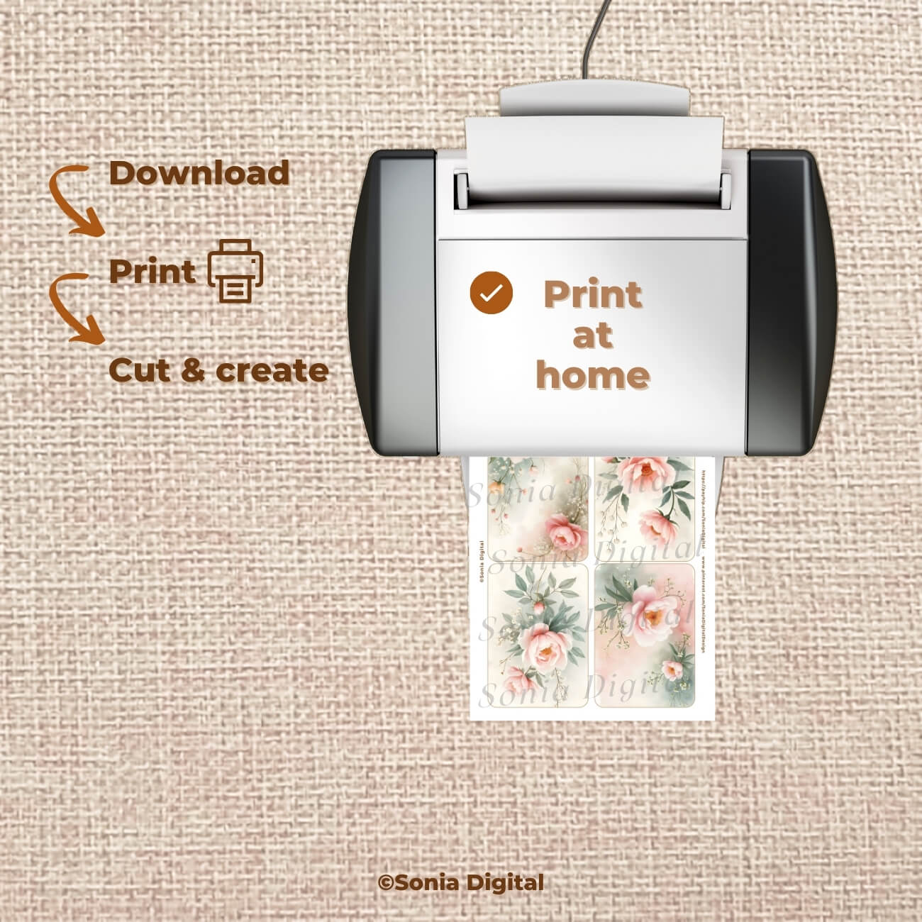🔸 Best printing results are obtained by printing on slightly thicker paper or cardboard, which will reduce curling and wrinkling when applying glue.