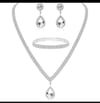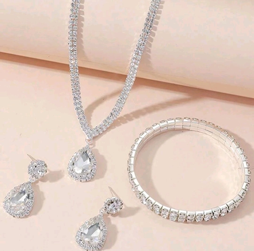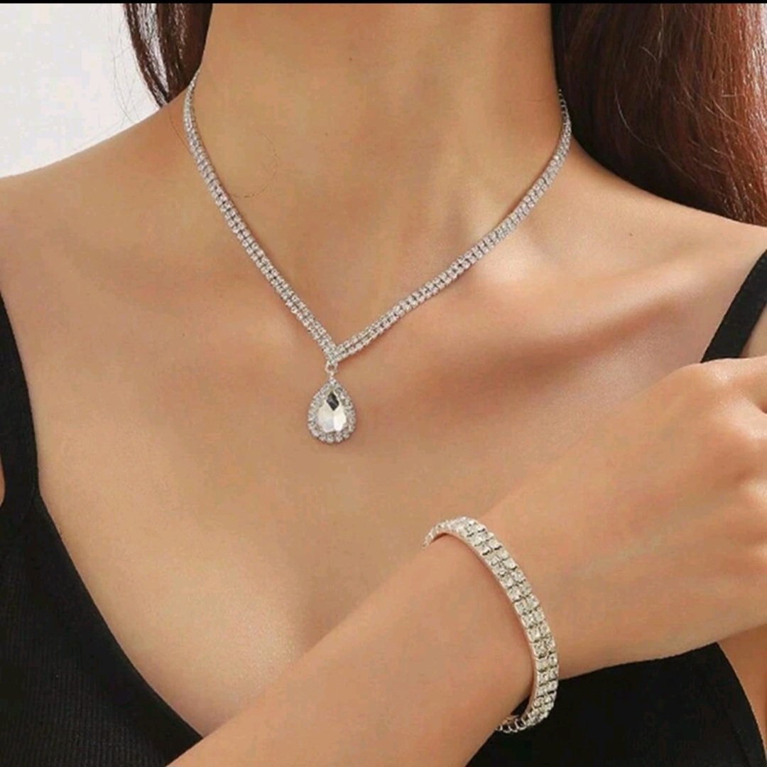 1 Set Classic & Fashionable Elegant Water Drop Shaped Necklace, Earrings And Bracelet Set Covered With Rhinestones, Suitable For Various Parties And Daily Wear