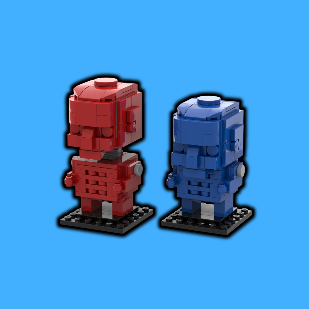 Build your own Brickheadz inspired by Rock'em Sock'em Robots (with cage)!