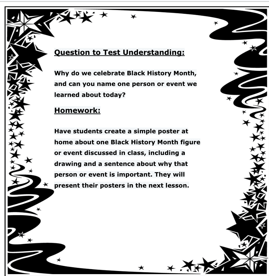 - LESSON PLAN TO INTRODUCE THE BLACK HISTORY MONTH UNIT OF STUDY