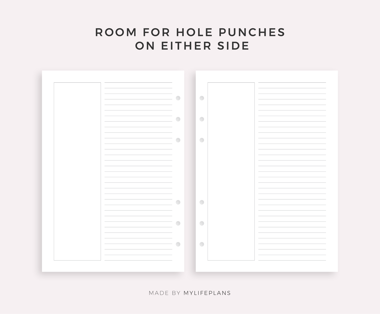 • Space for hole punches on either side