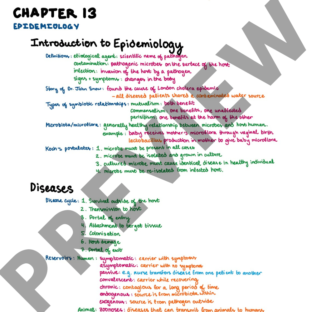 Complete full-color study guide for Exam 1. Includes Chapter 1, 2, 4, 8, 13 and disease cards #1 through #10.