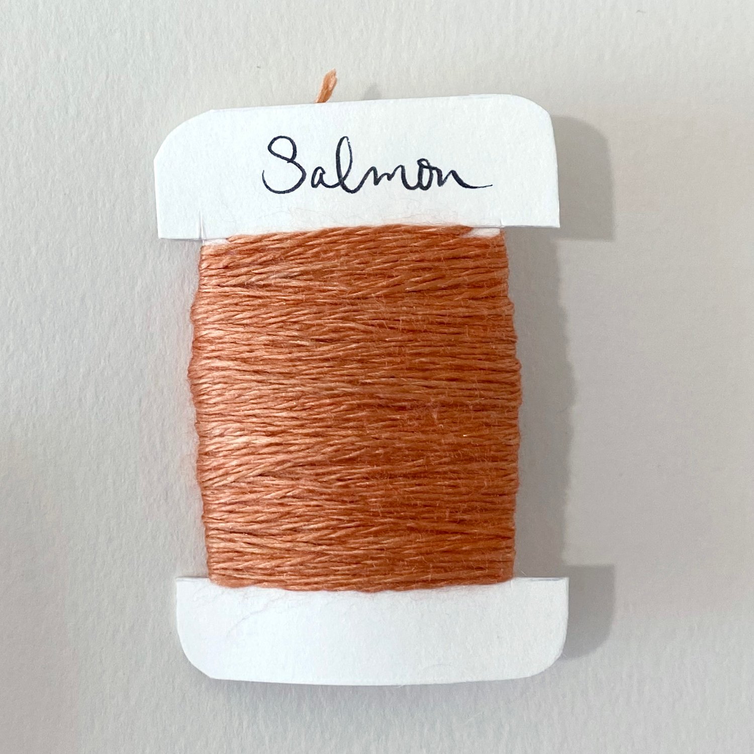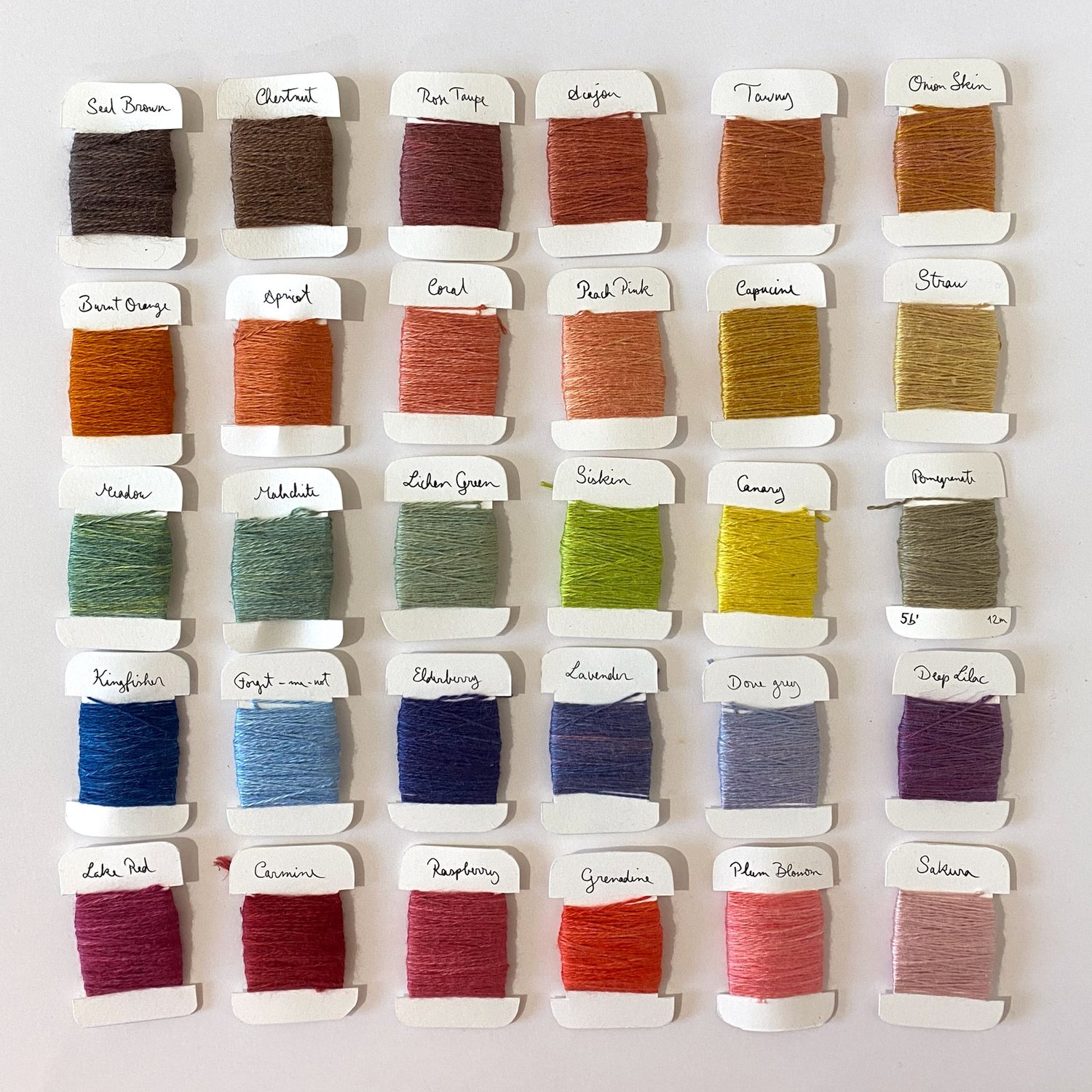 Mulberry silk embroidery thread (16/2), length 12 meters, hand-dyed individually in the process of my researching historical dyes. All these colours come from classic natural dyes such as indigo, weld, lac, sappanwood, safflower, madder and combinations thereof.