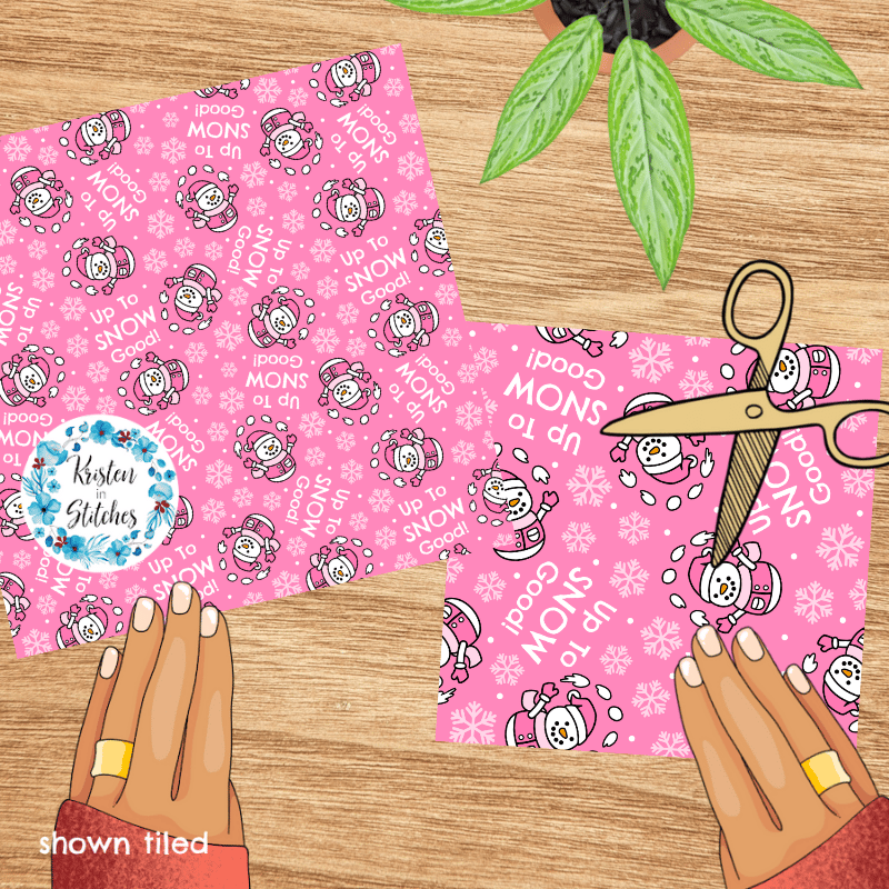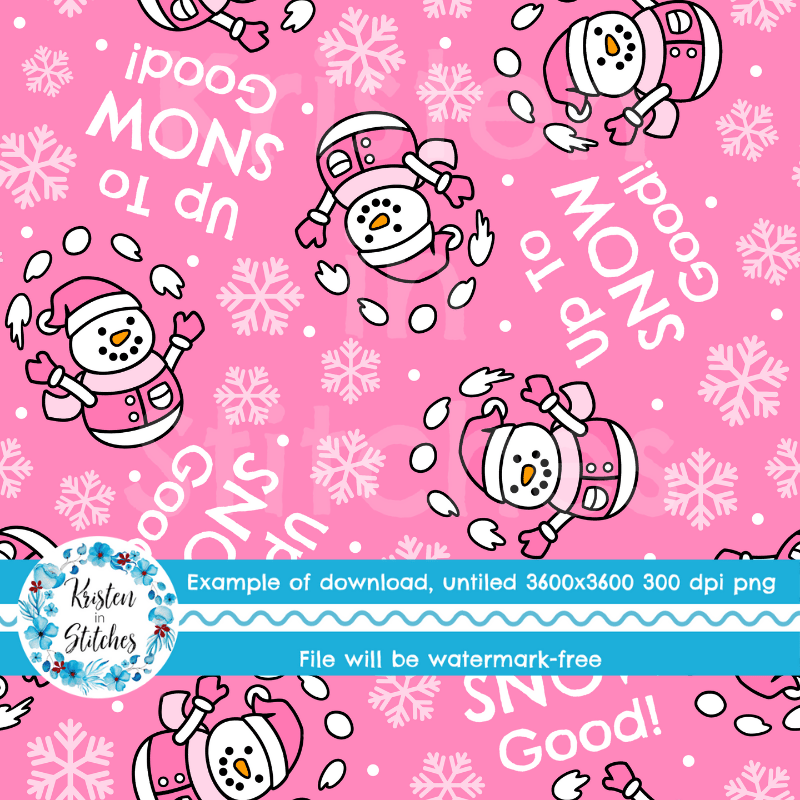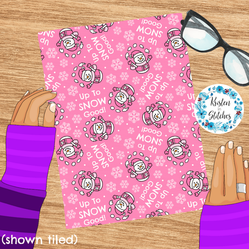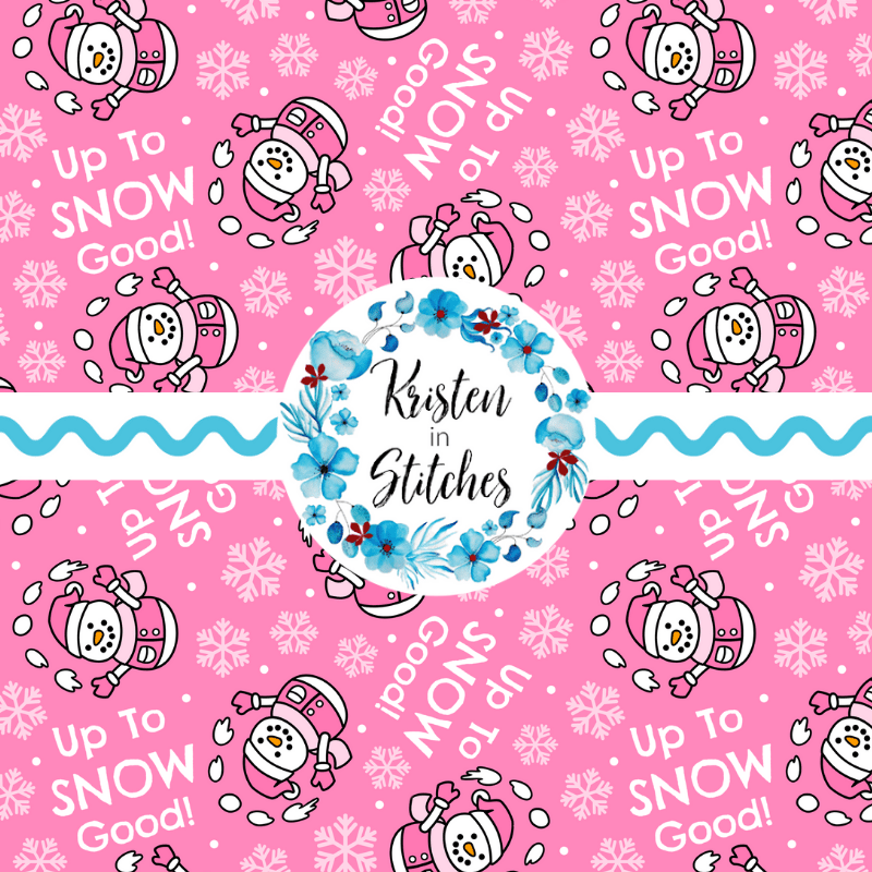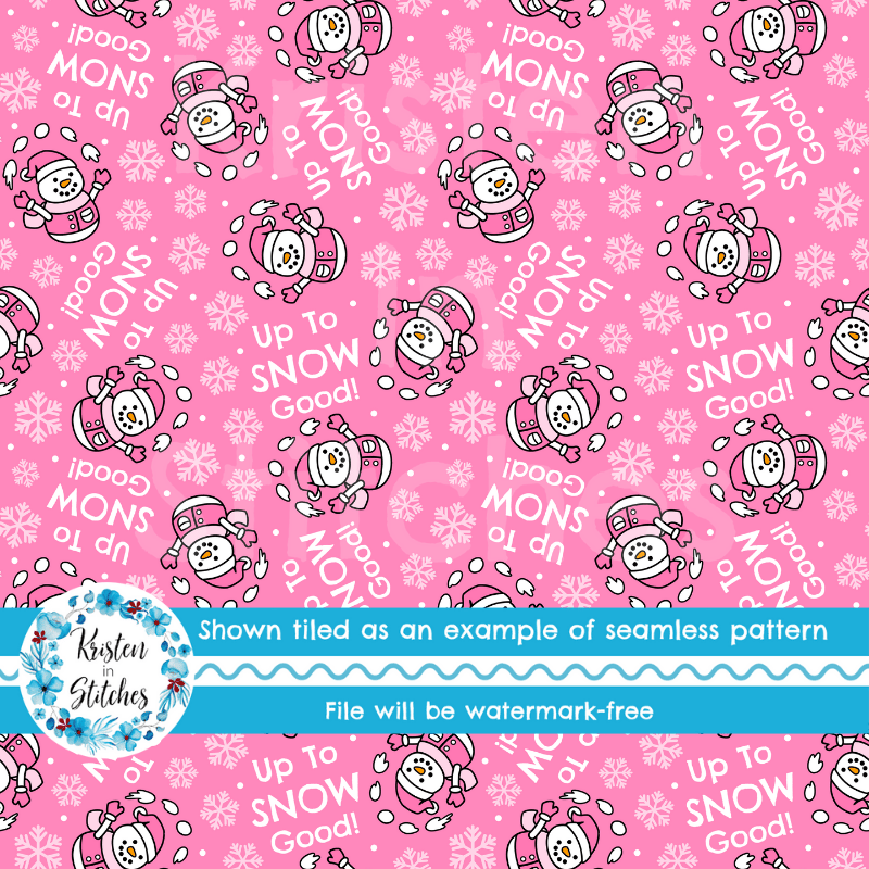 Up to Snow Good Silly Snowmen Winter Snowflakes Seamless Pattern, Pink