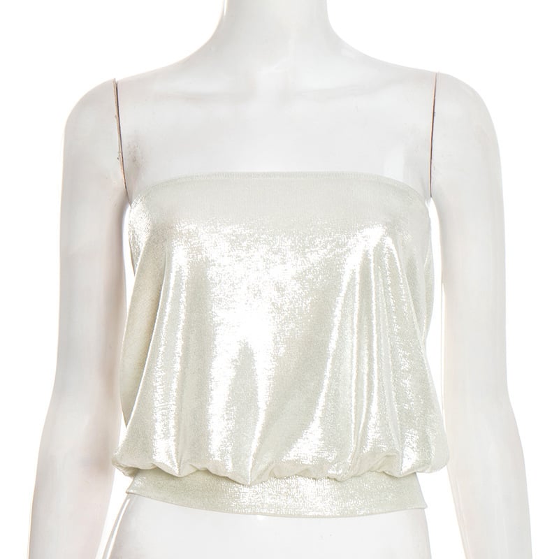 French retro shiny party gold-stamped apricot eaist-cinching bandeau