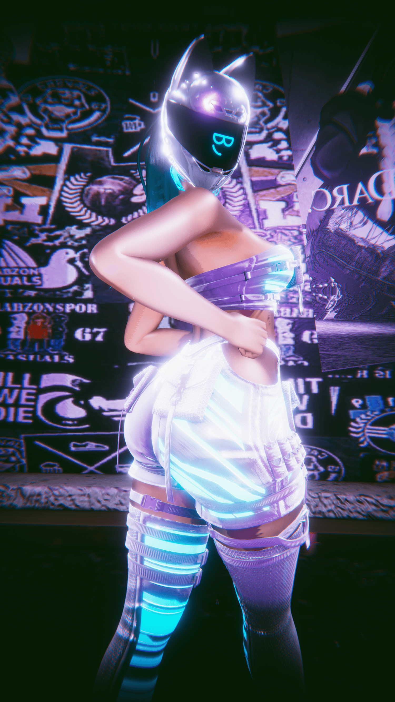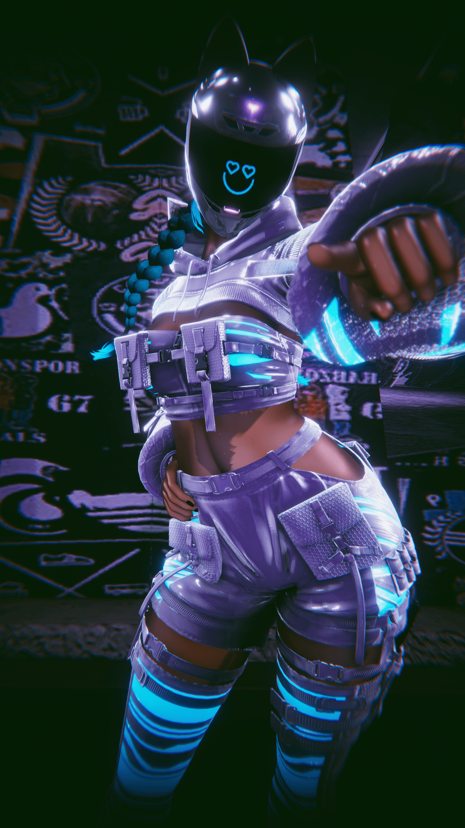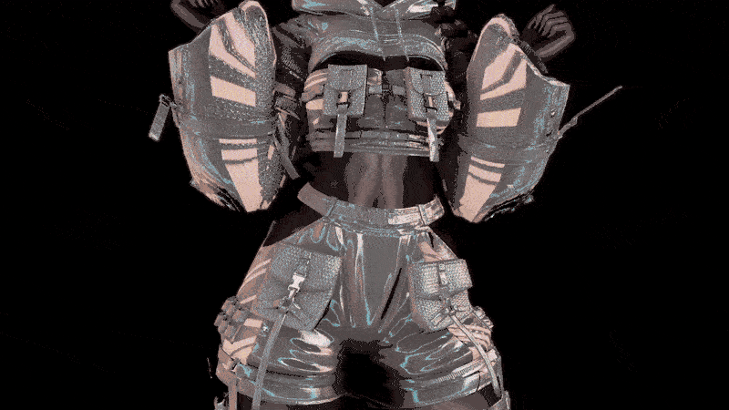 TOP, HOODIE, PASTIES, SHORTS, KNIFE, THIGH HIGHS, PANTIES, SHOES, 2 HAIRS(BRAIDS, PONYTAIL), 11 VISORS, 5 HAIR MATS, 4 OUTFIT MATS, HUE ON EVERYTHING, RGB TOGGLE, SOFT BODY SLIDER, MUSCLE BODY SLIDER, BOOB SLIDER, ASS SLIDER, BOOB PRESSED SLIDER, SKINSWAP