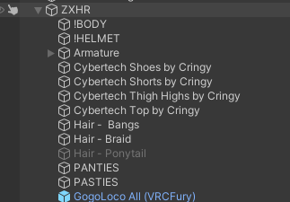 ZXHR includes; 10 Base Toggles, 38ish Toggles Combined. . Hue-Shift, Skinswaps, Hair-Swaps, RGB, Bones and Colliders where they need to be (Hands, Spine, Chest) (Hair, Ears, ETC)