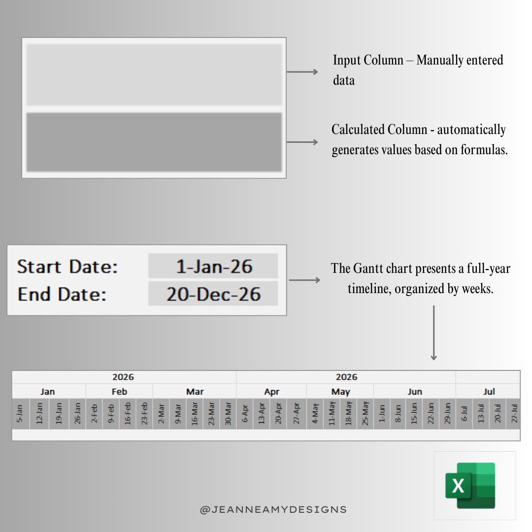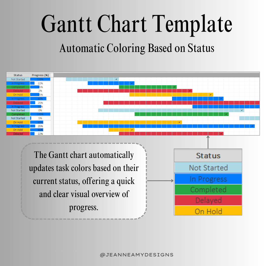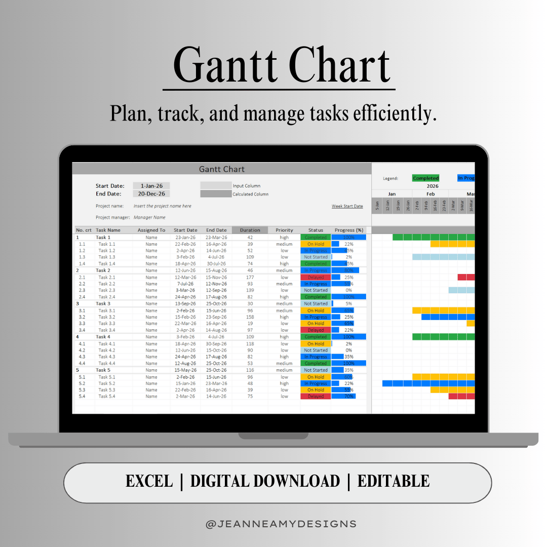 Gantt Chart Template for Excel – Editable & Customizable – Project Management Gantt Chart – Project Planner