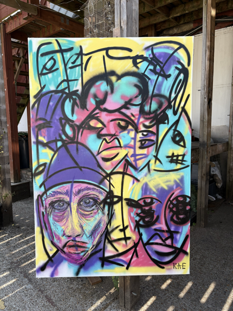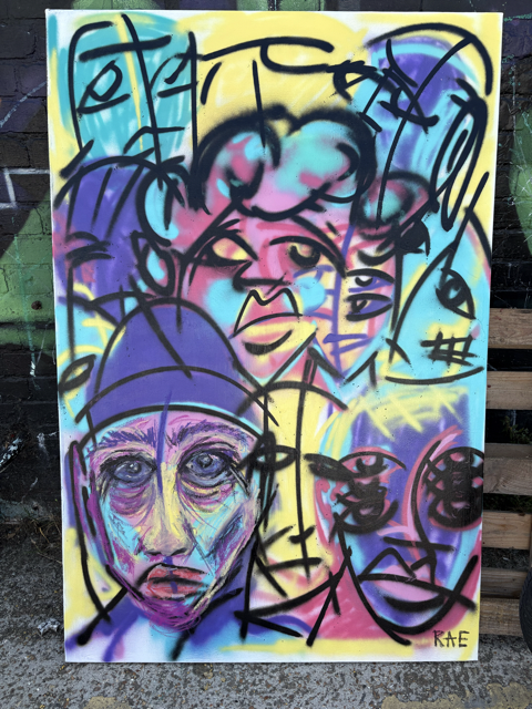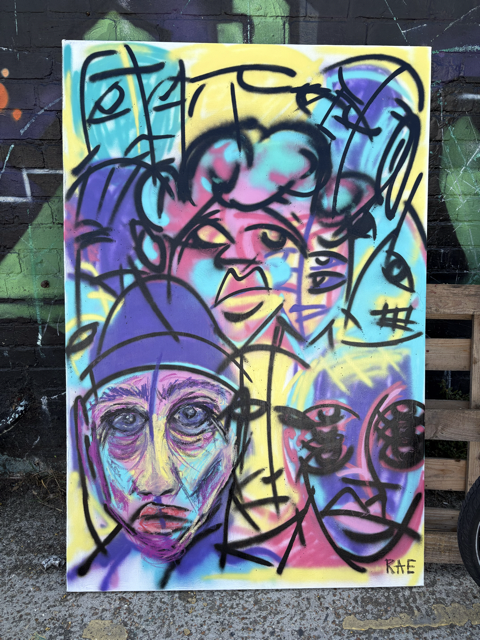 There's no story to this artwork apart from the story of my own development as an artist. I've been developing my artistic style for a long time - from painting murals, graffiti and street art - to creating expressive portraits and abstracted scenes from my life in oil pastels, paints and acrylics.