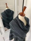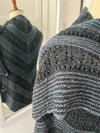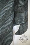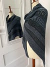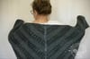 The shawl is knitted in a triangular shape, with a lace and garter section, worked from the top down from charts or written instructions. The design is suitable for yarn weights from fingering to worsted.