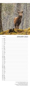 A3 skinny sized 2023 Scottish Wildlife Calendar featuring images taken in Scotland by professional photographer and guide Karen Miller.