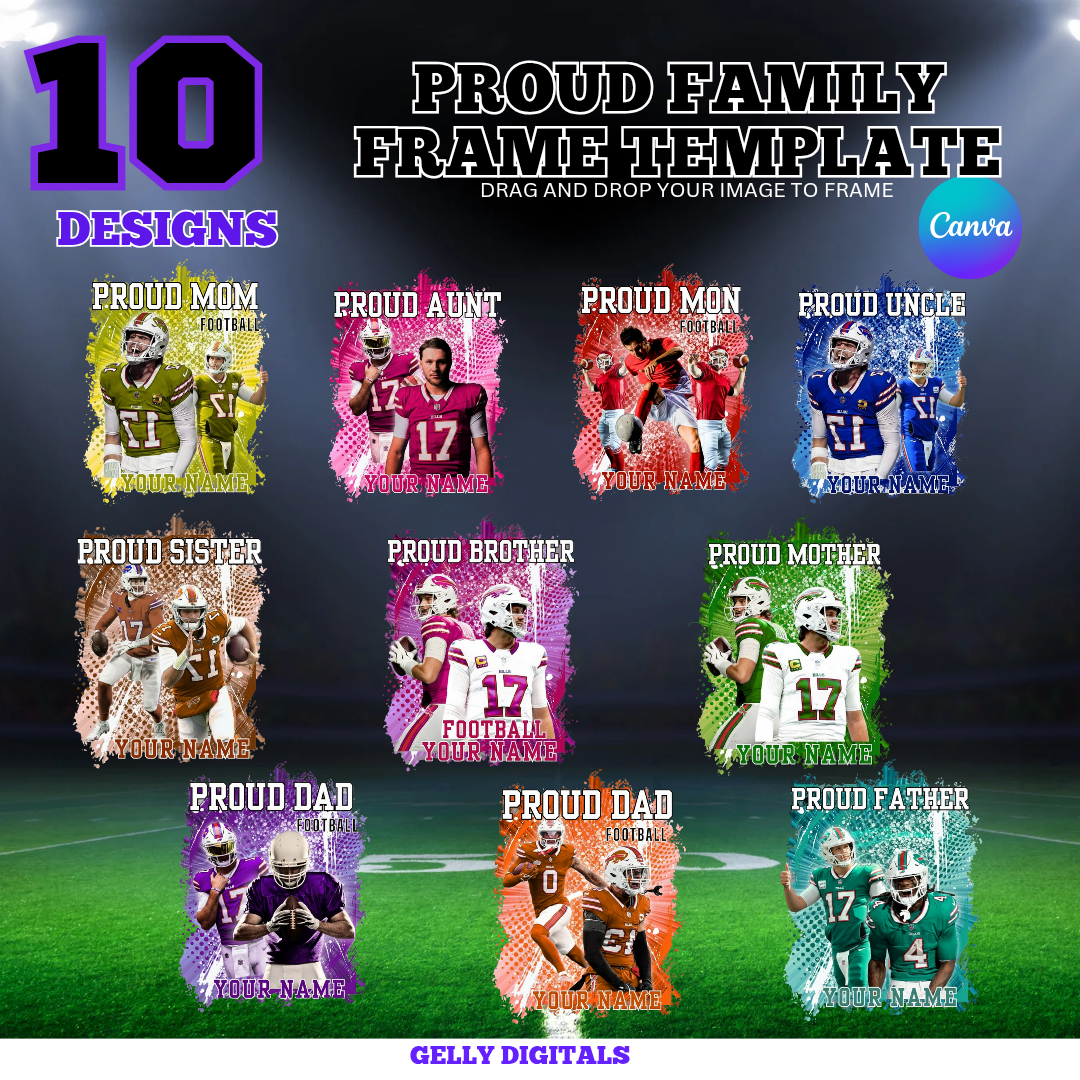 16 Game Day Family Shirts - Proud Football Brother Sister Dad Mom Canva Template