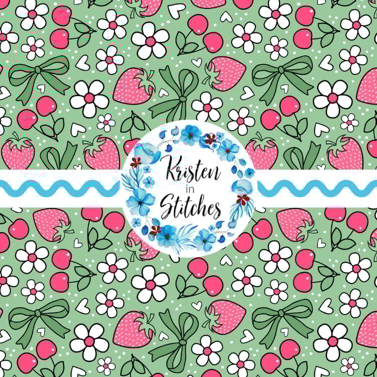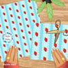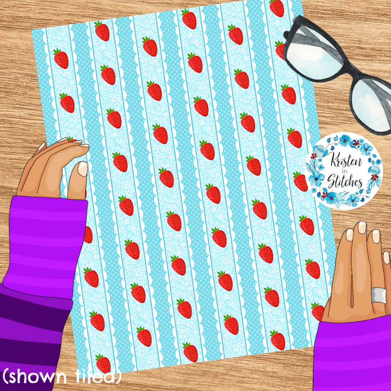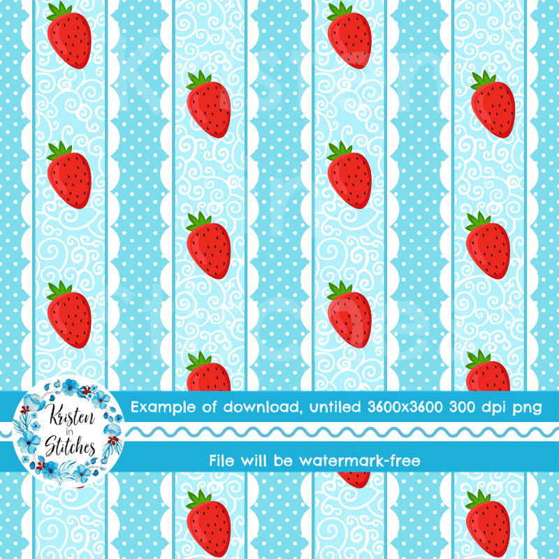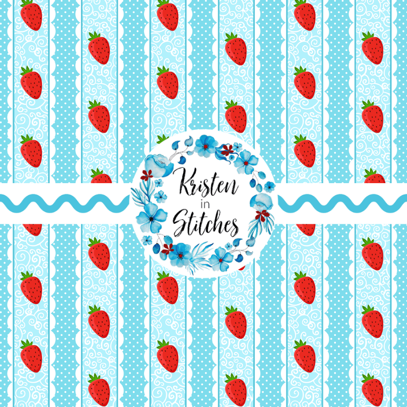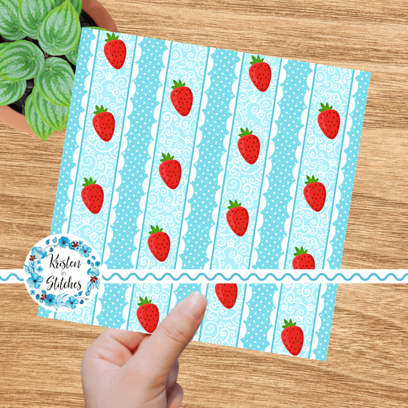 Sweet strawberries with scalloped lace and polkadots.