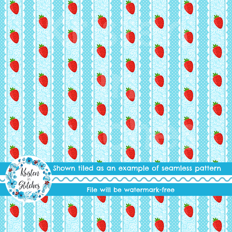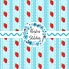 Sweet Lace Strawberry Stripes Seamless Pattern, Red and Blue