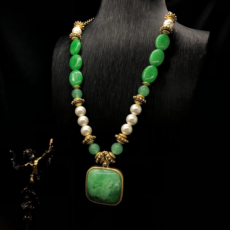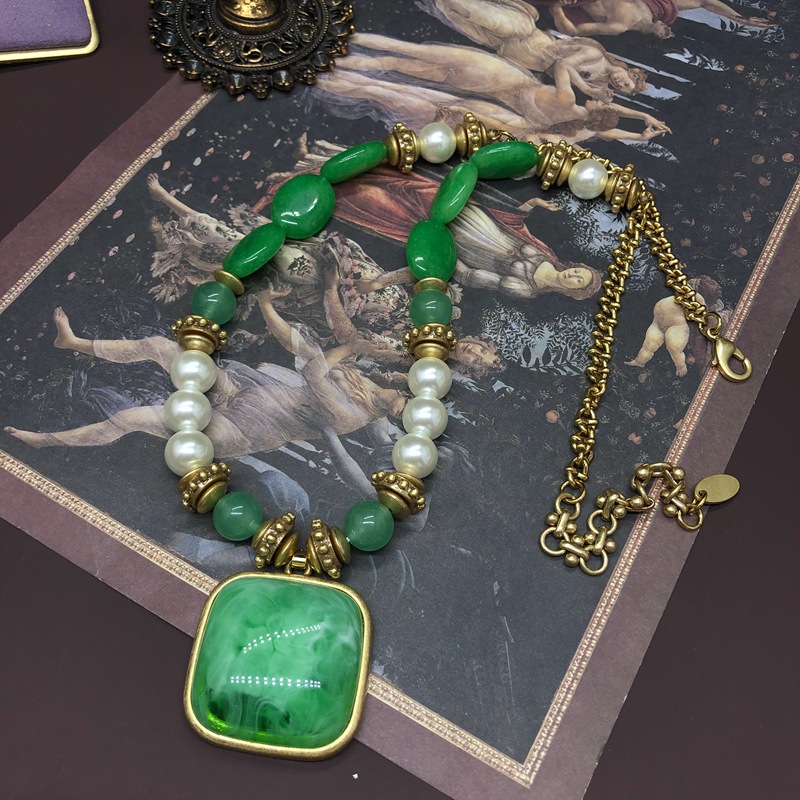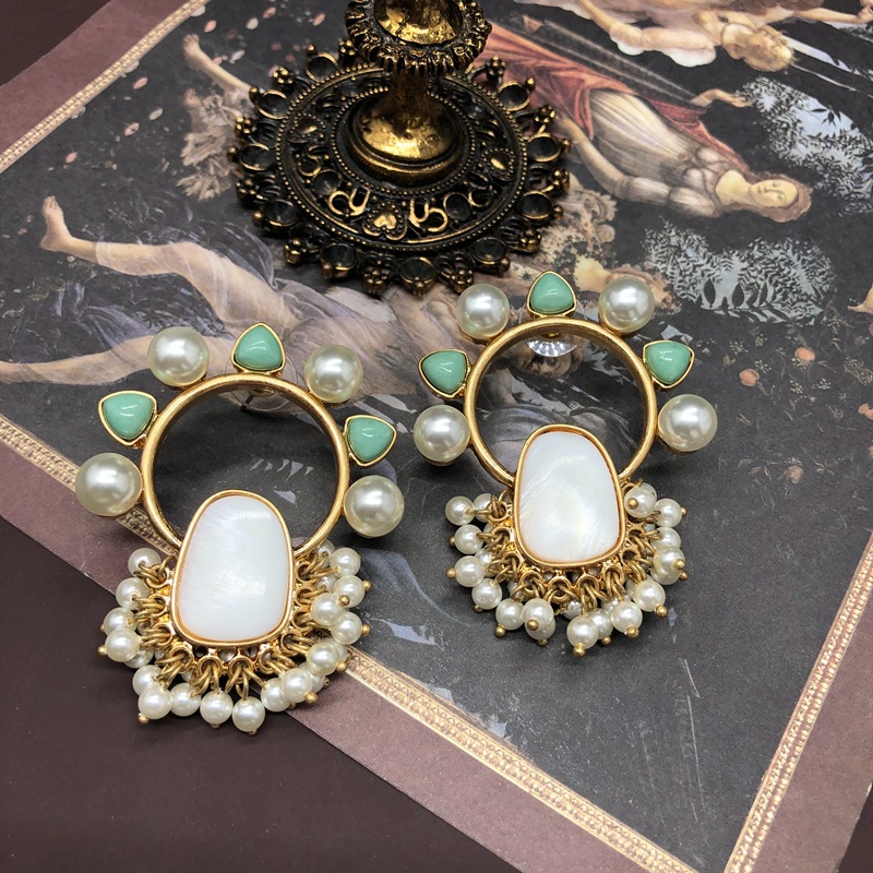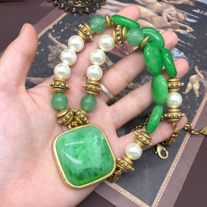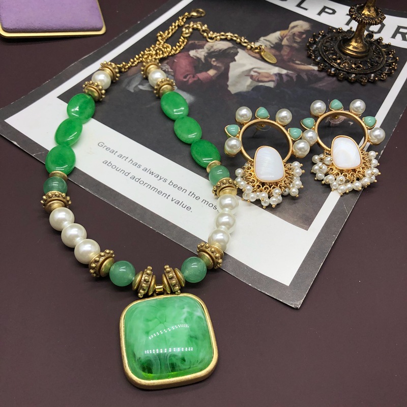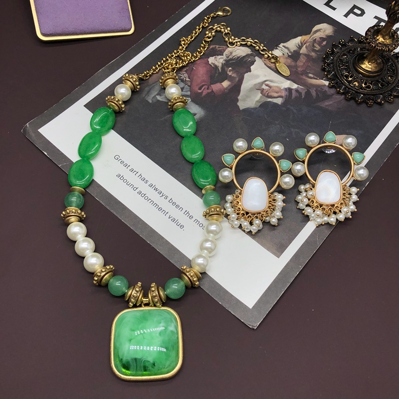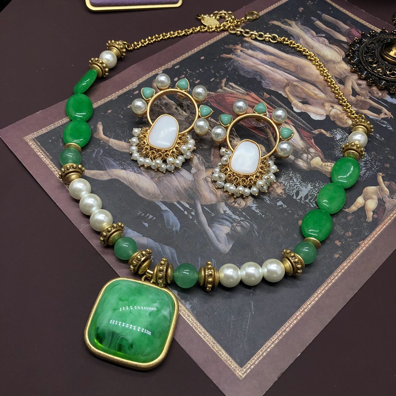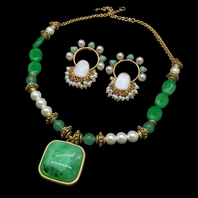 Vintage medieval court style mother-in-pearl stone earrings necklace set