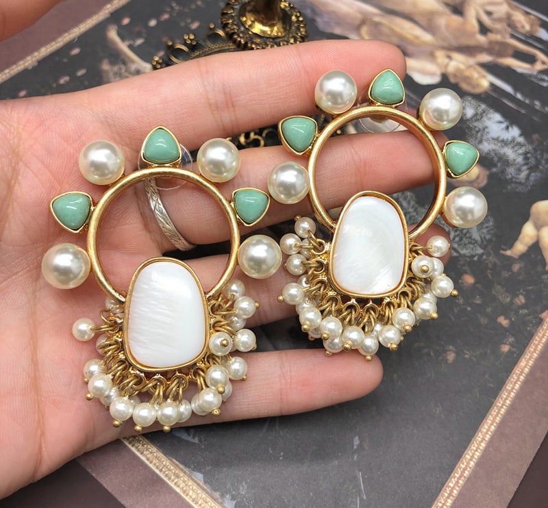 Mother-in-Pearl Stone, Plated Real Gold.