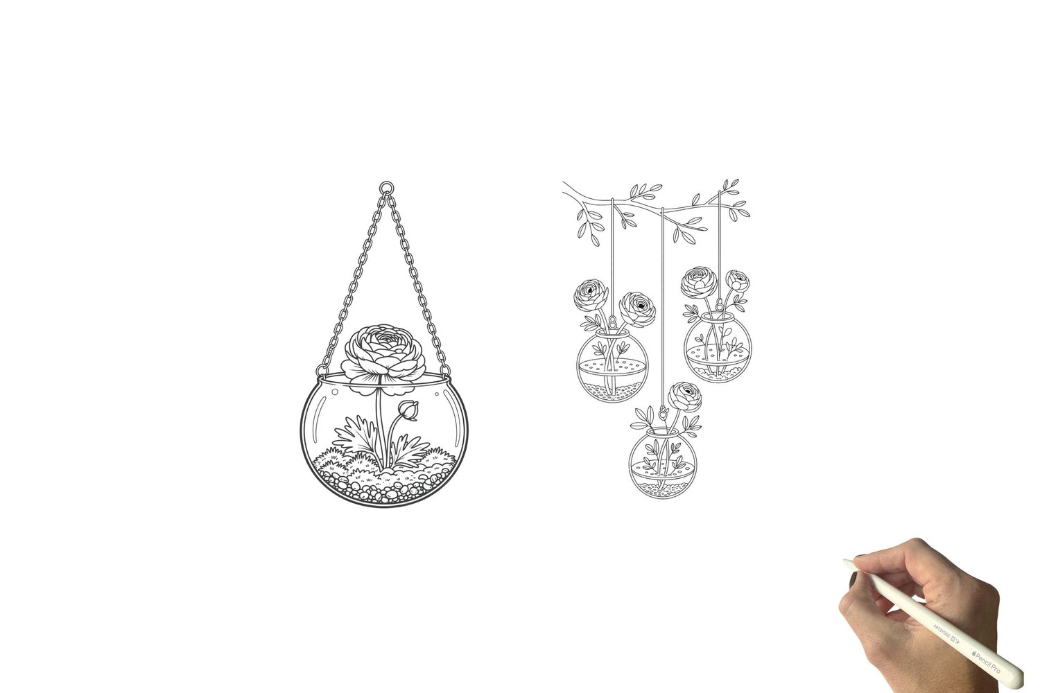 Ranunculus watercolor sketch outlines, Ranunculus Watercolor Templates, flower digi stamps, Cardmaking, Procreate PNG, digital stamps png,