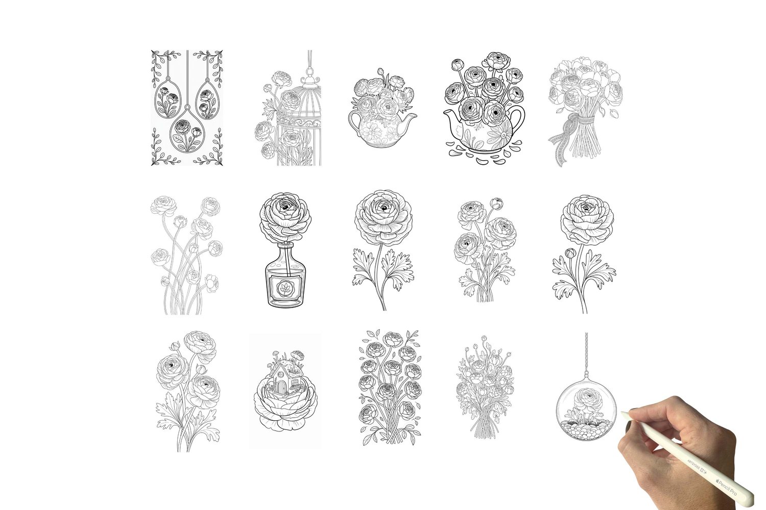 Explore Your Creativity with these Romantic Ranunculus Painting Templates & digi stamps pngs!