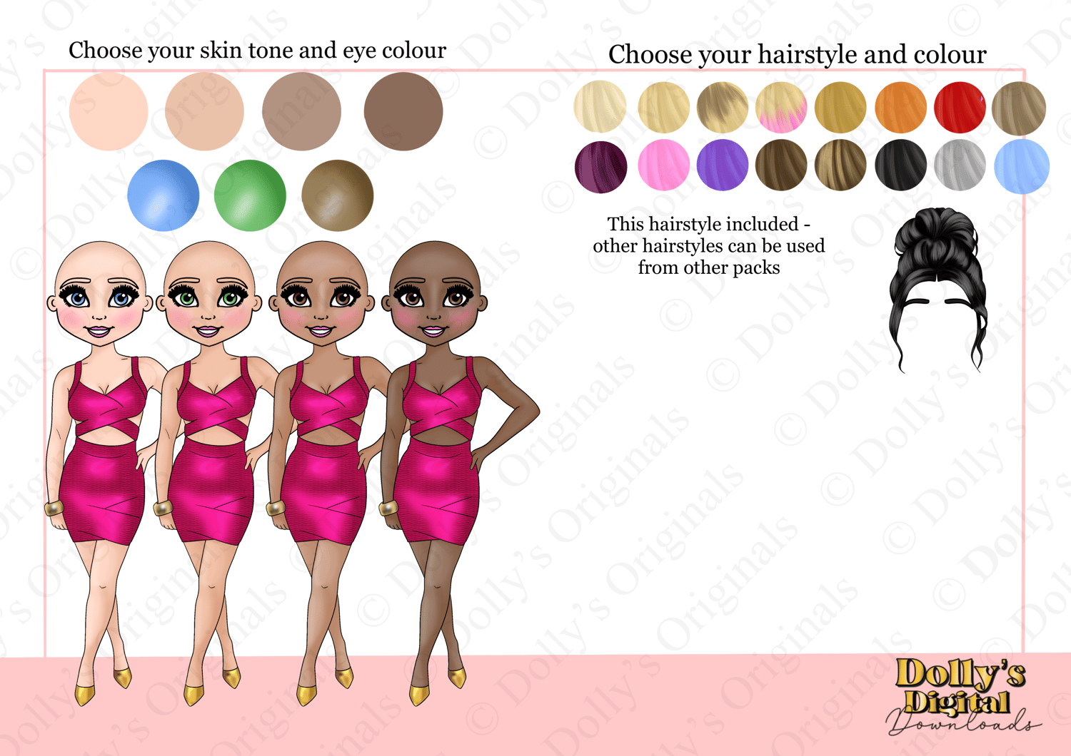 Instant digital download of our Pink Iridescent Party Dress Dolly Character Bundle PNG (28 PNG’s)