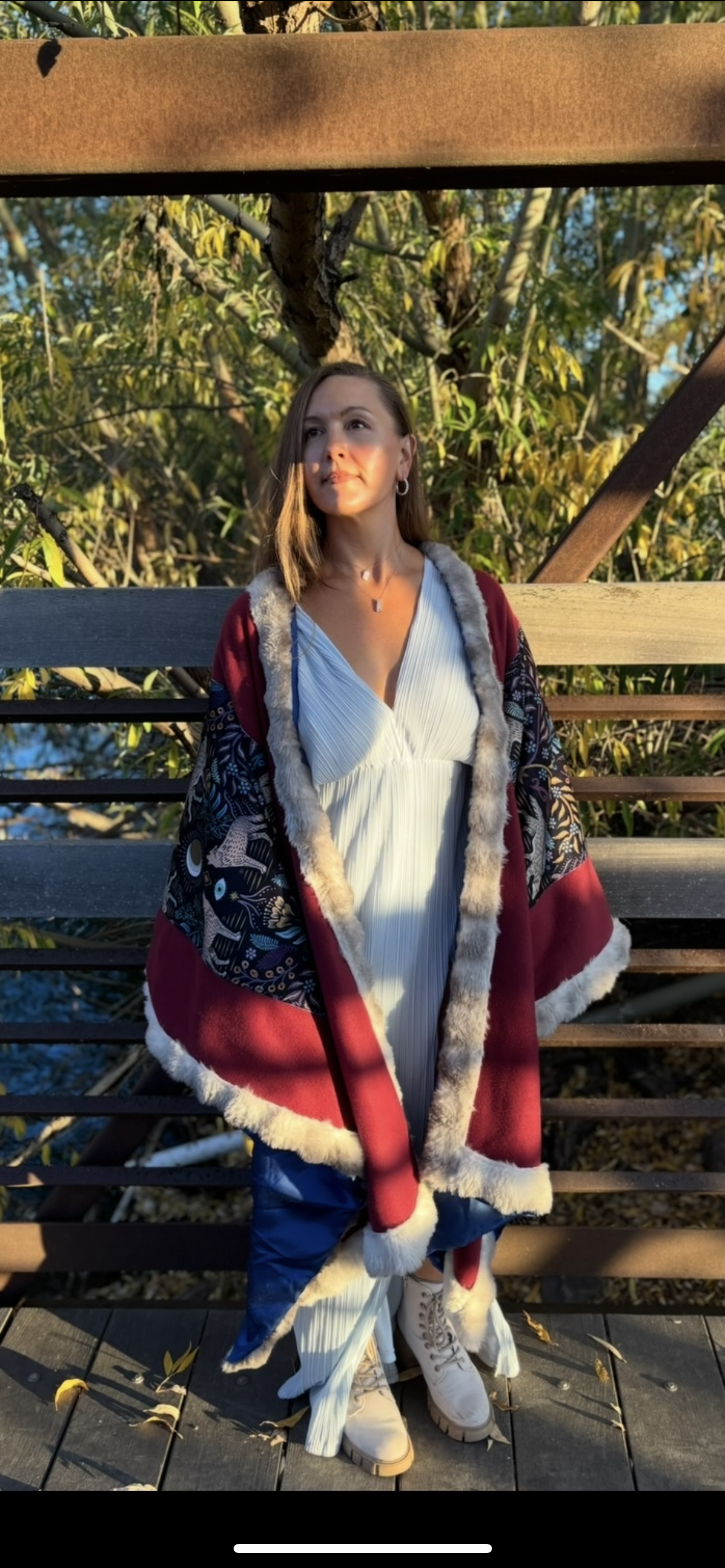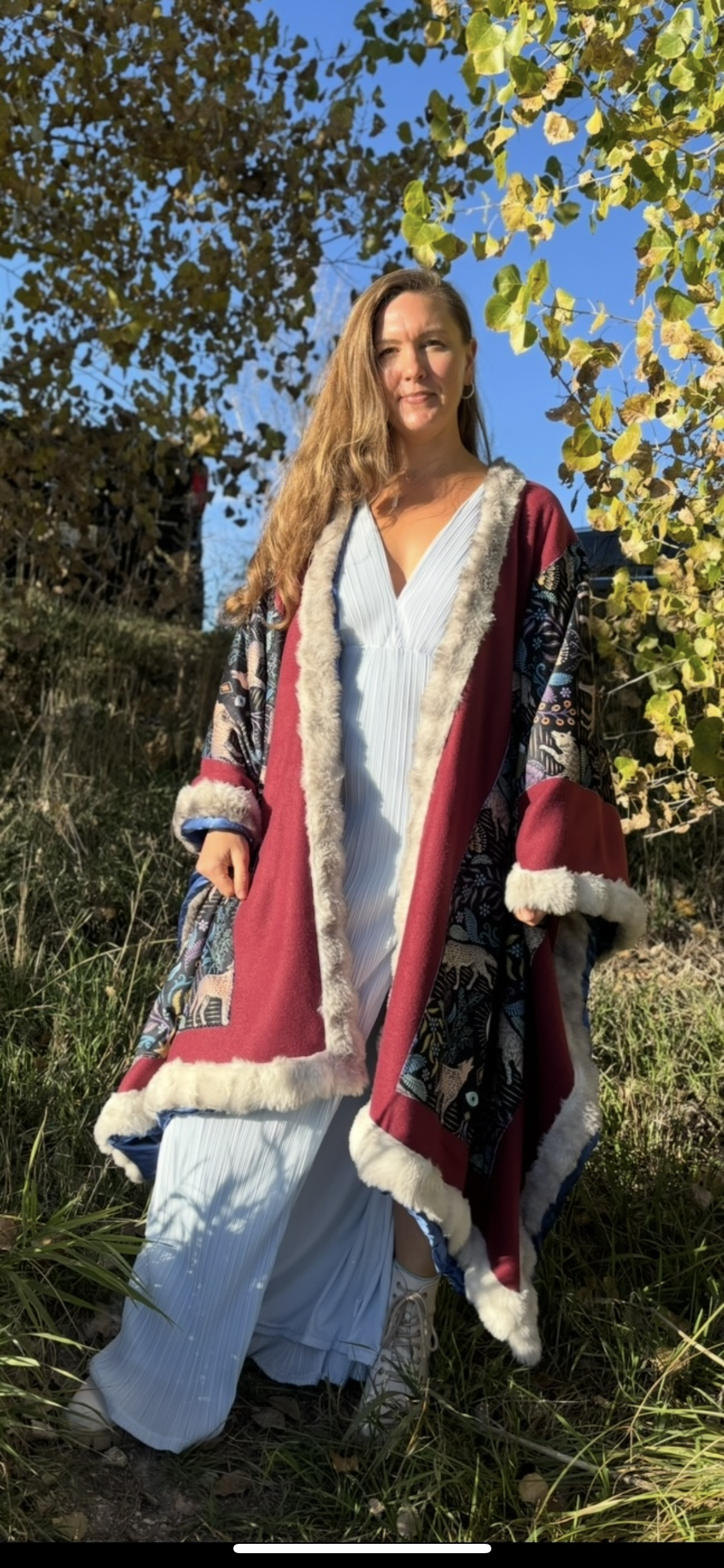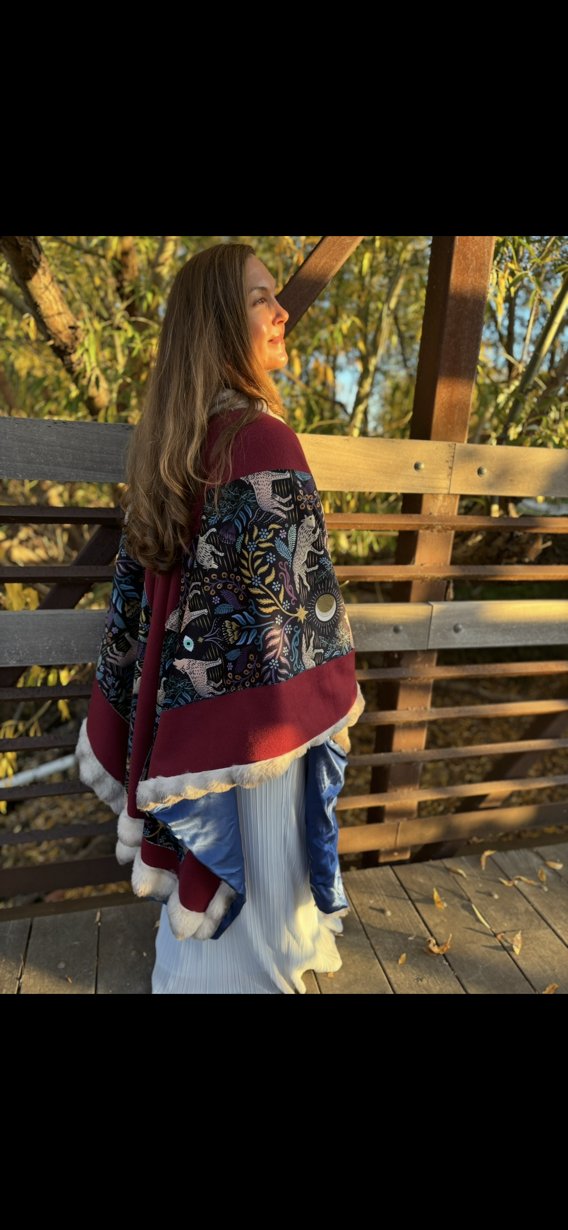 Soft, warm and beautiful open Poncho, fully lined. Made with Fleece, Minky velvet, Sustainable Satin and Faux Fur.