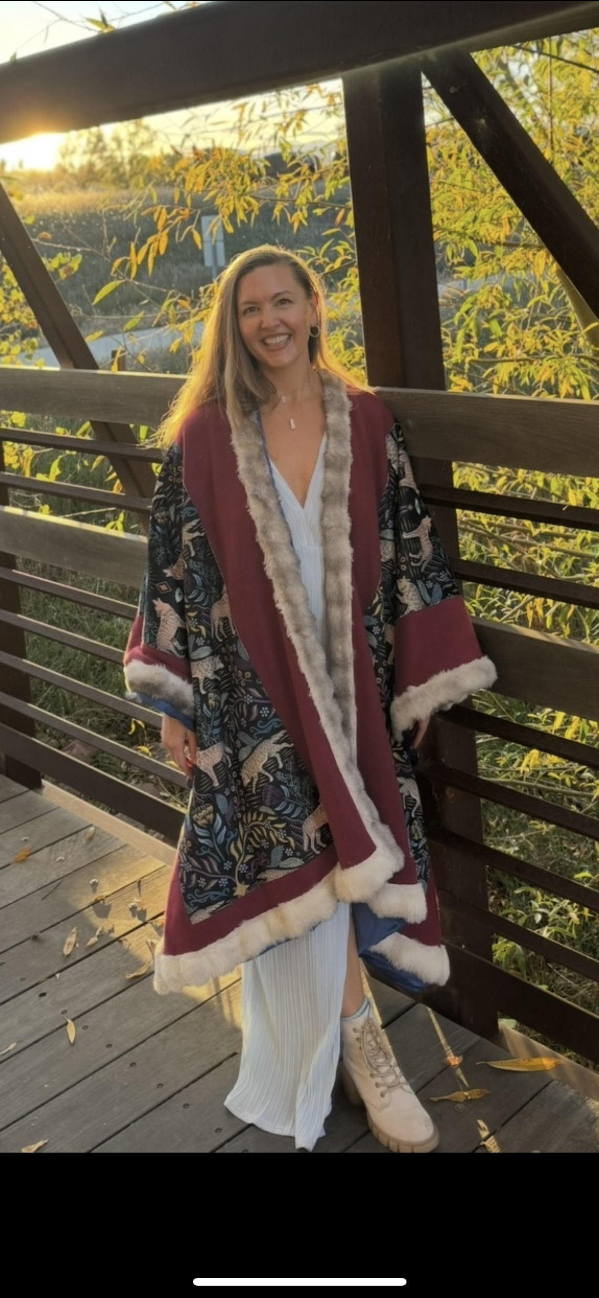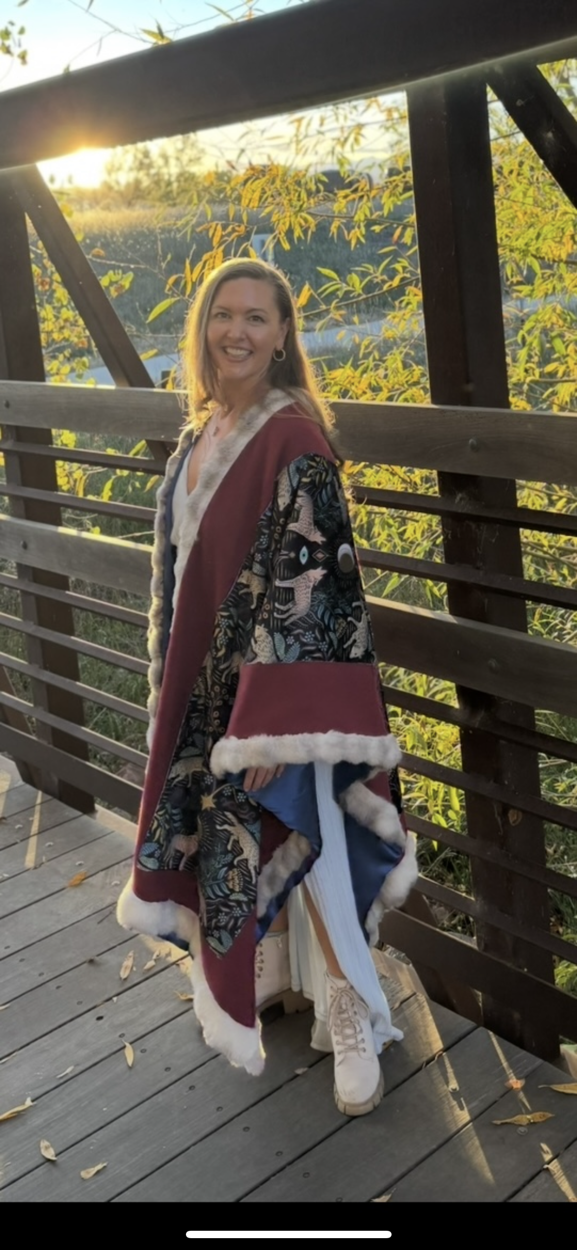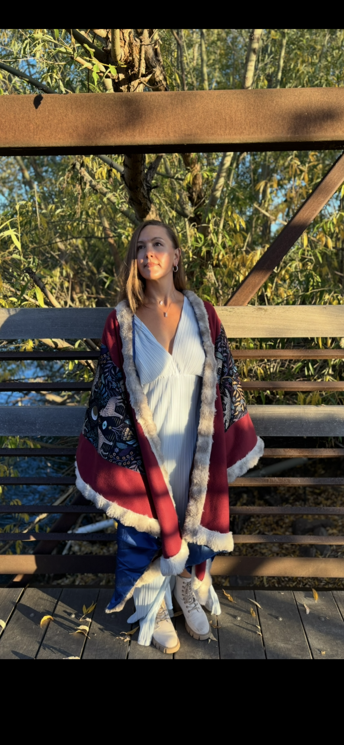Soft, warm and beautiful open Poncho, fully lined. Made with Fleece, Minky velvet, Sustainable Satin and Faux Fur.