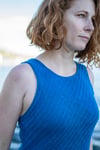 To best show the bias pattern, I recommend a solid colour. Please note that the finished garment will twist slightly due to the linen yarn, this is normal and part of the design.