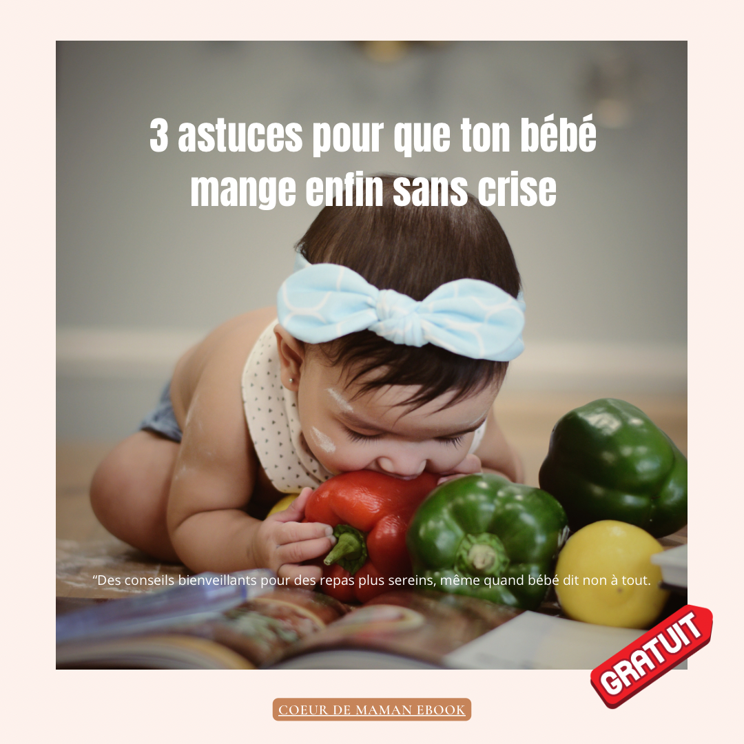 Retrouve dans ce petit pdf , des conseils bienveillants pour des repas plus sereins, même quand bébé dit non à tout.