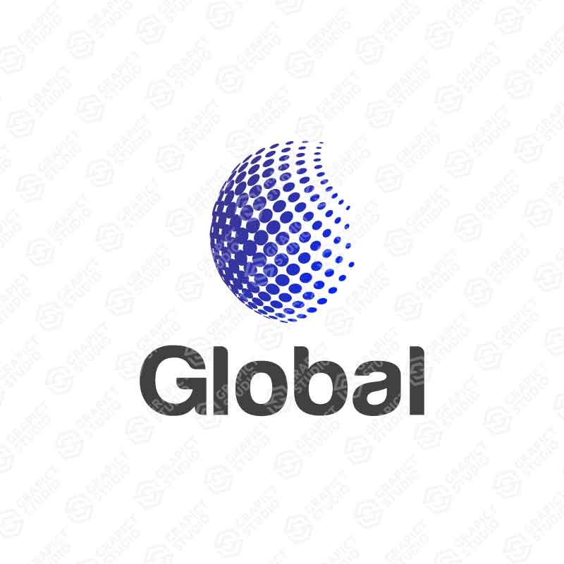 Logo design related to technology or communication company. Creative illustration of halftone globe logo for blog, website, business, company or personal profile.