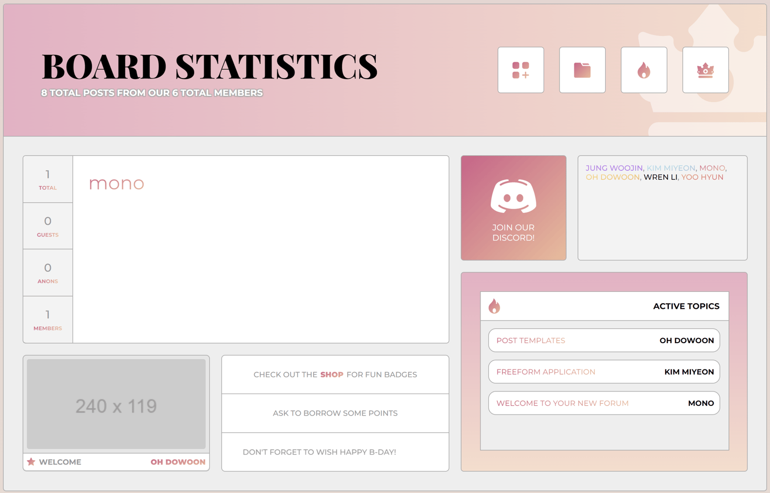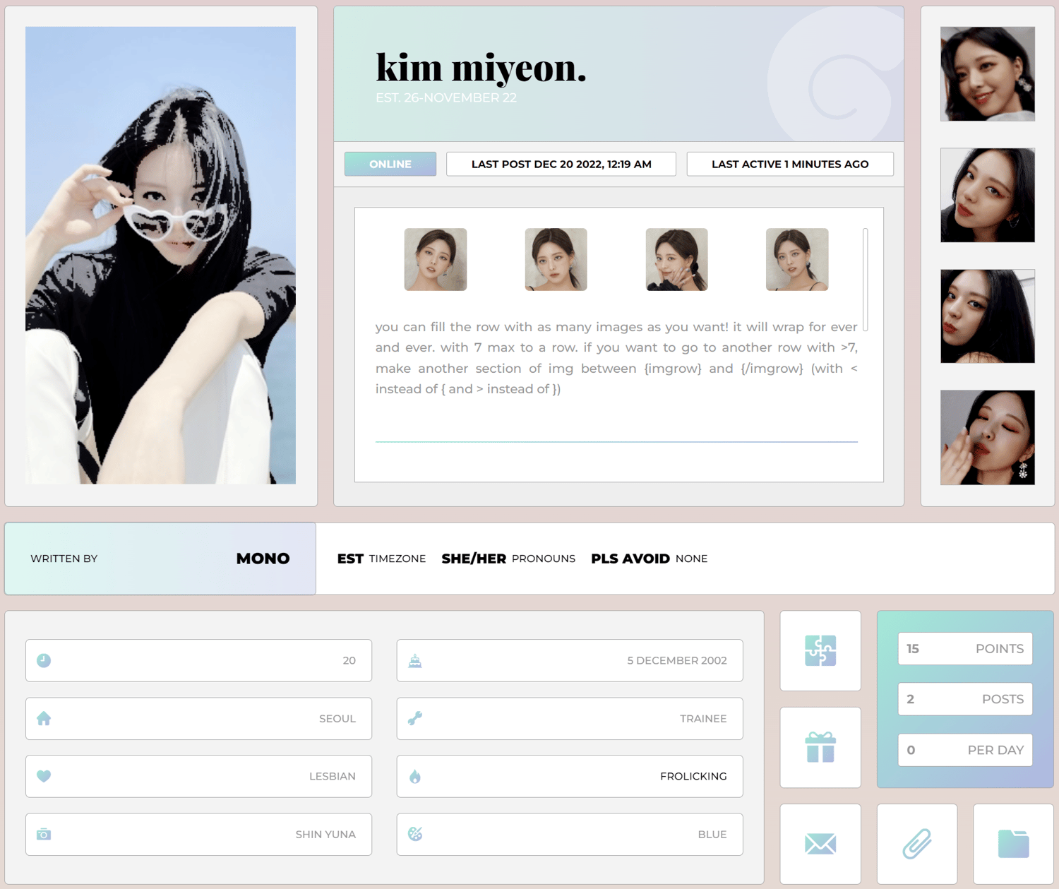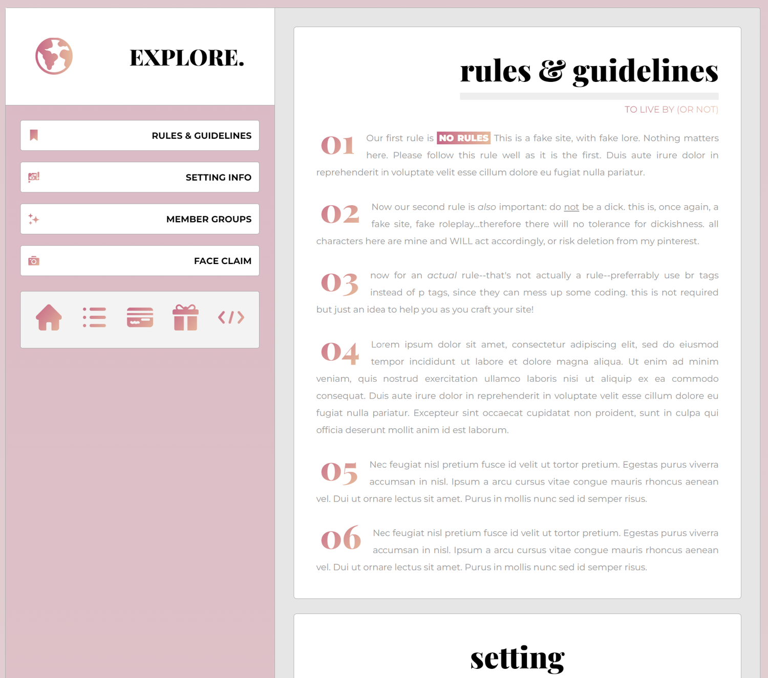 i plan on coming up with some templates & codes in my free time, i'm in my senior year of college so that's my main focus now. regardless, i hope you enjoy it if you like it! if you'd like a live preview feel free to ask on discord (i'm rarely on this blog to check dms unforunately). i'm now diagnosedmono there. the skin comes with the following: