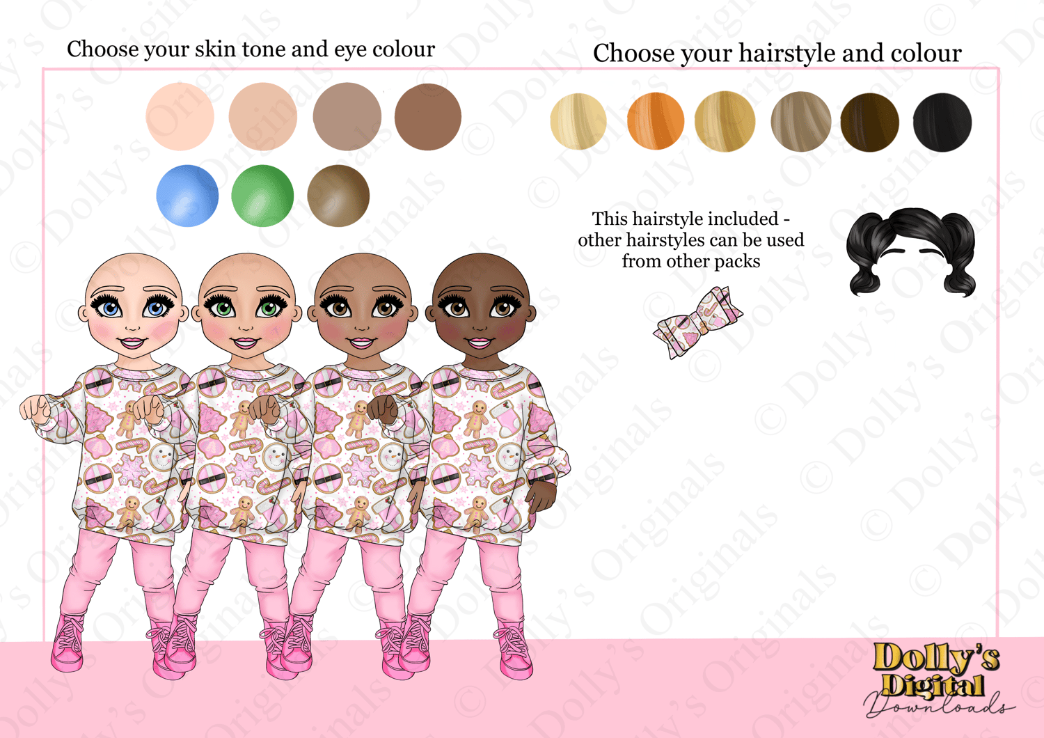 Instant digital download of our Pink Christmas Cookie Jumper Toddler Girl Bundle PNG (20 PNG’s)