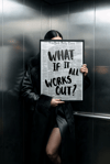 Make a bold statement with this striking luxury fashion print featuring a powerful motivational headline: “What If It All Works Out?” Set in a dramatic black-and-white elevator scene, this piece blends high-end editorial aesthetics with modern attitude — perfect for fashion lovers, creatives, and trend-driven interiors.