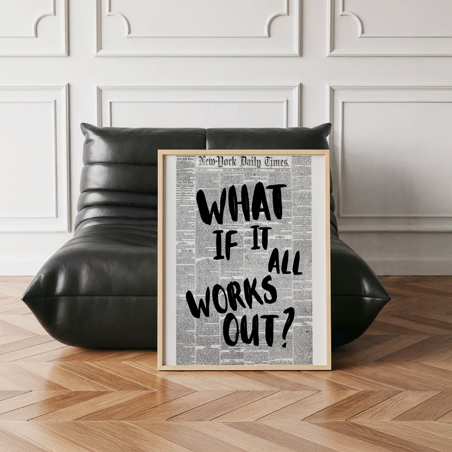 What If It All Works Out Quote Poster – Chic Black and White Fashion Wall Art – Trendy Poster for Girls Room Decor, High Fashion Hypebeast Printable Art