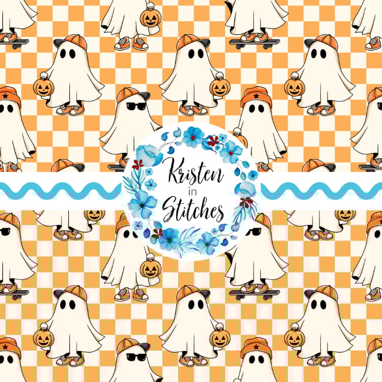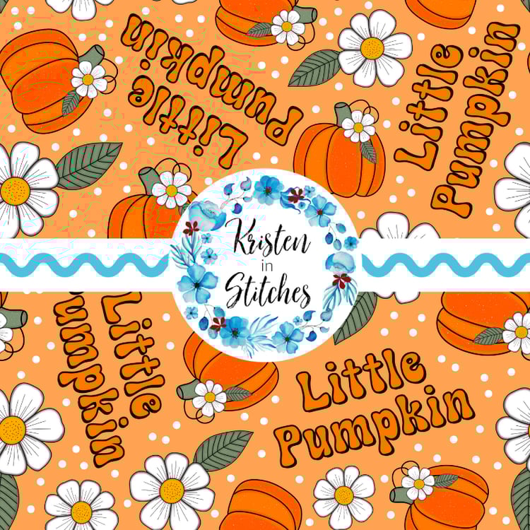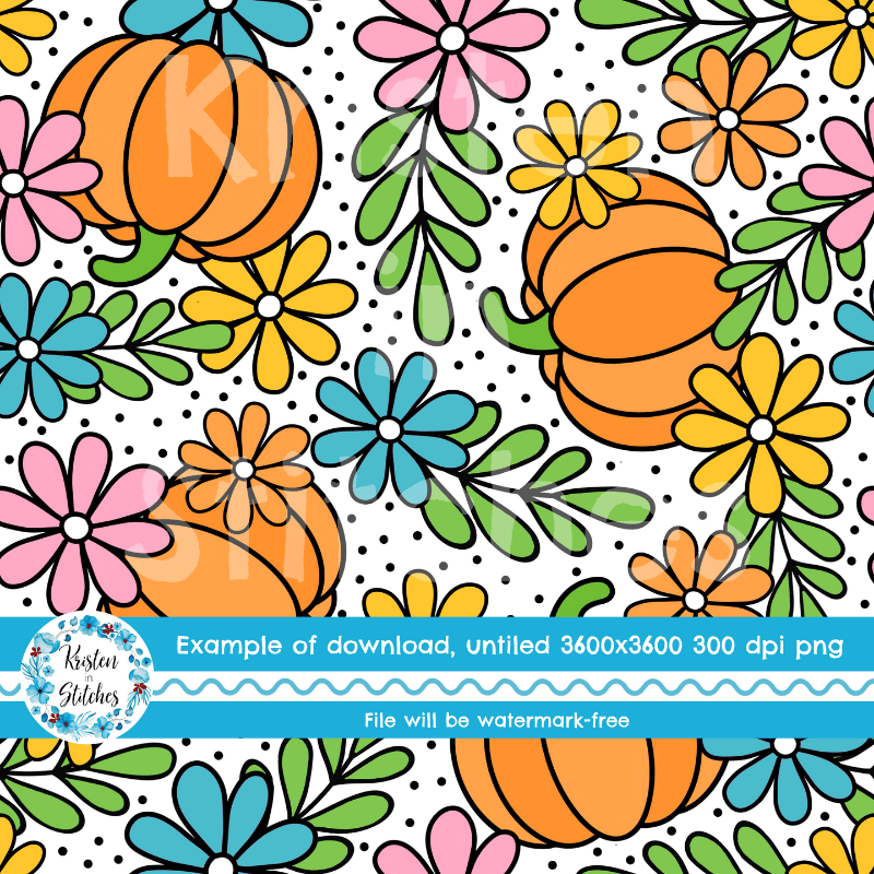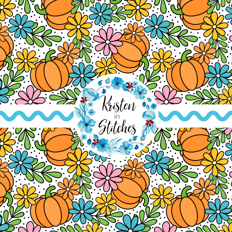 A pretty pattern for the fall season, with pumpkins and daisy flowers.