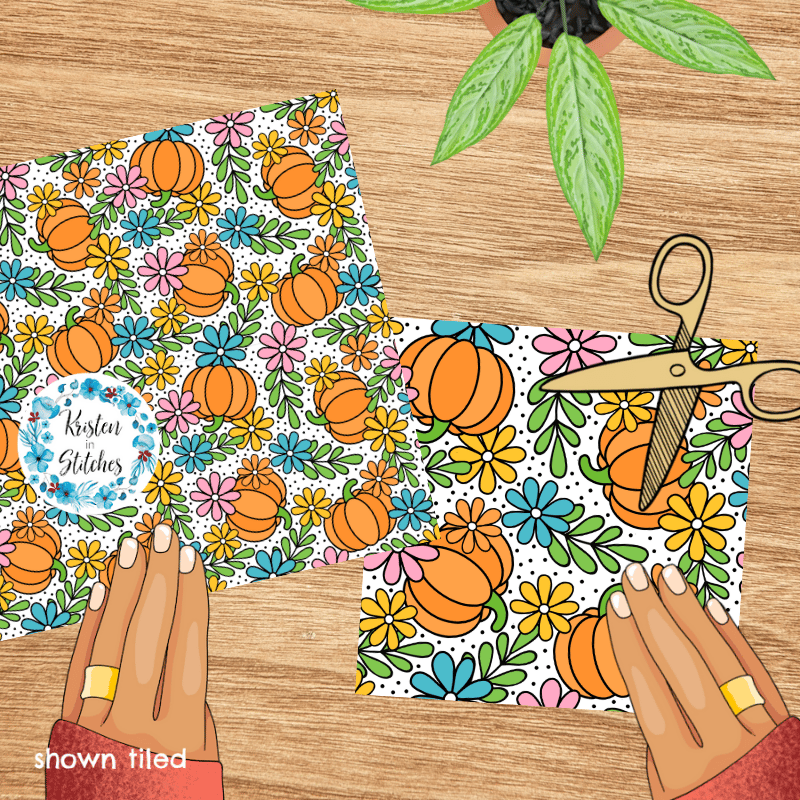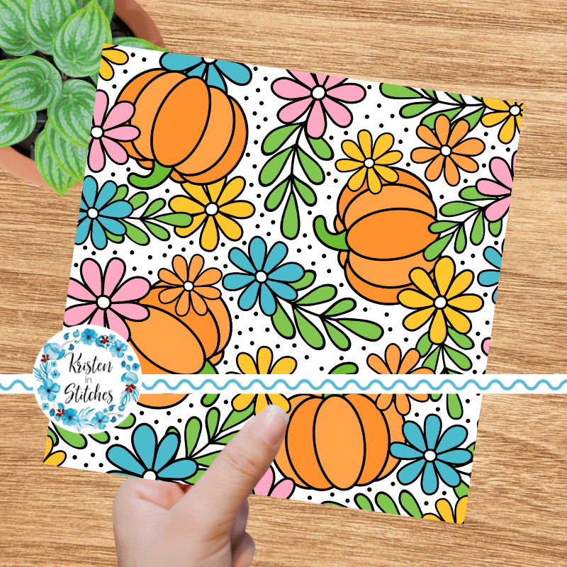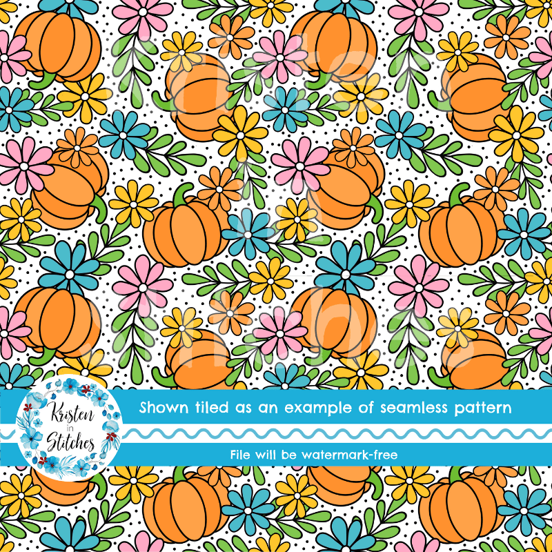Pretty Pumpkin Patch Autumn Fall Floral Seamless Pattern