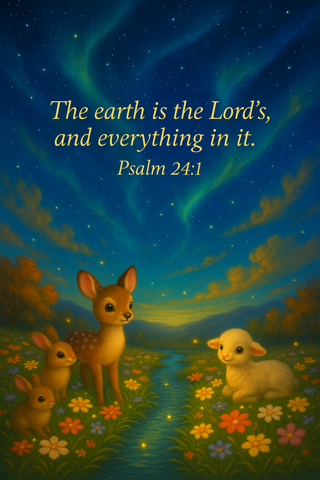 🐇🌌 Christian Creation Wall Art – Psalm 24:1 Meadow & Animals Poster – Faith-Based Printable for Devotion, Homeschool & Ministry – Nature & Reverence Theme