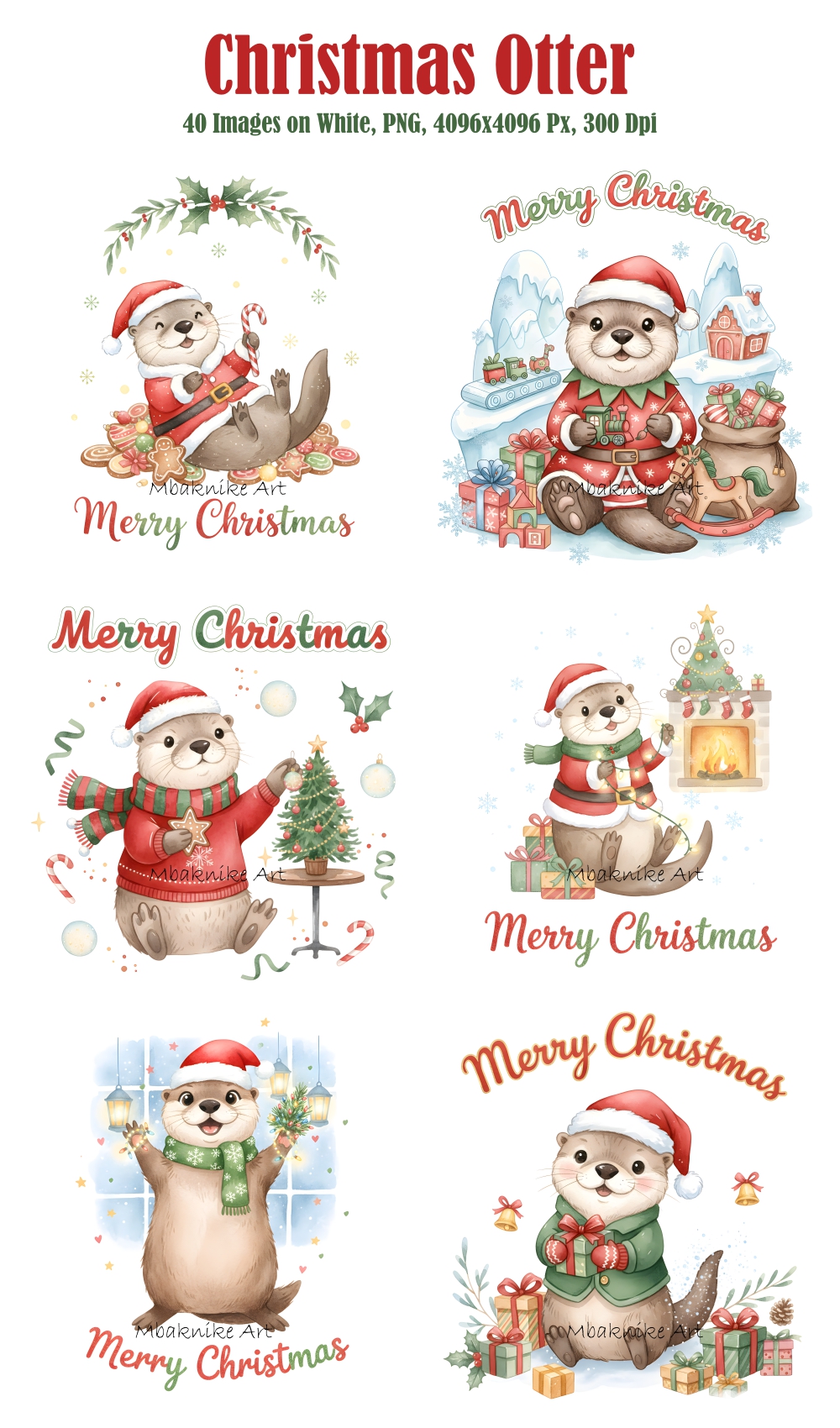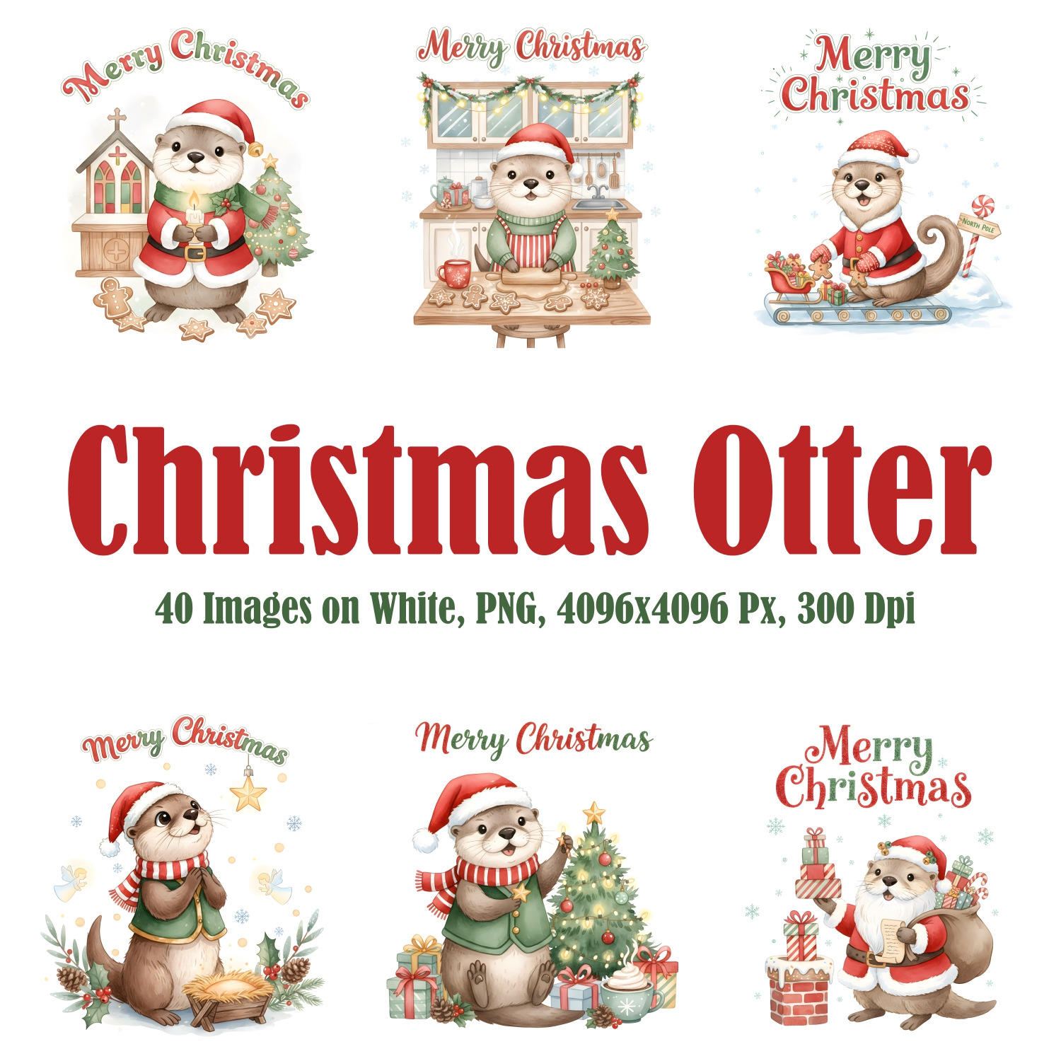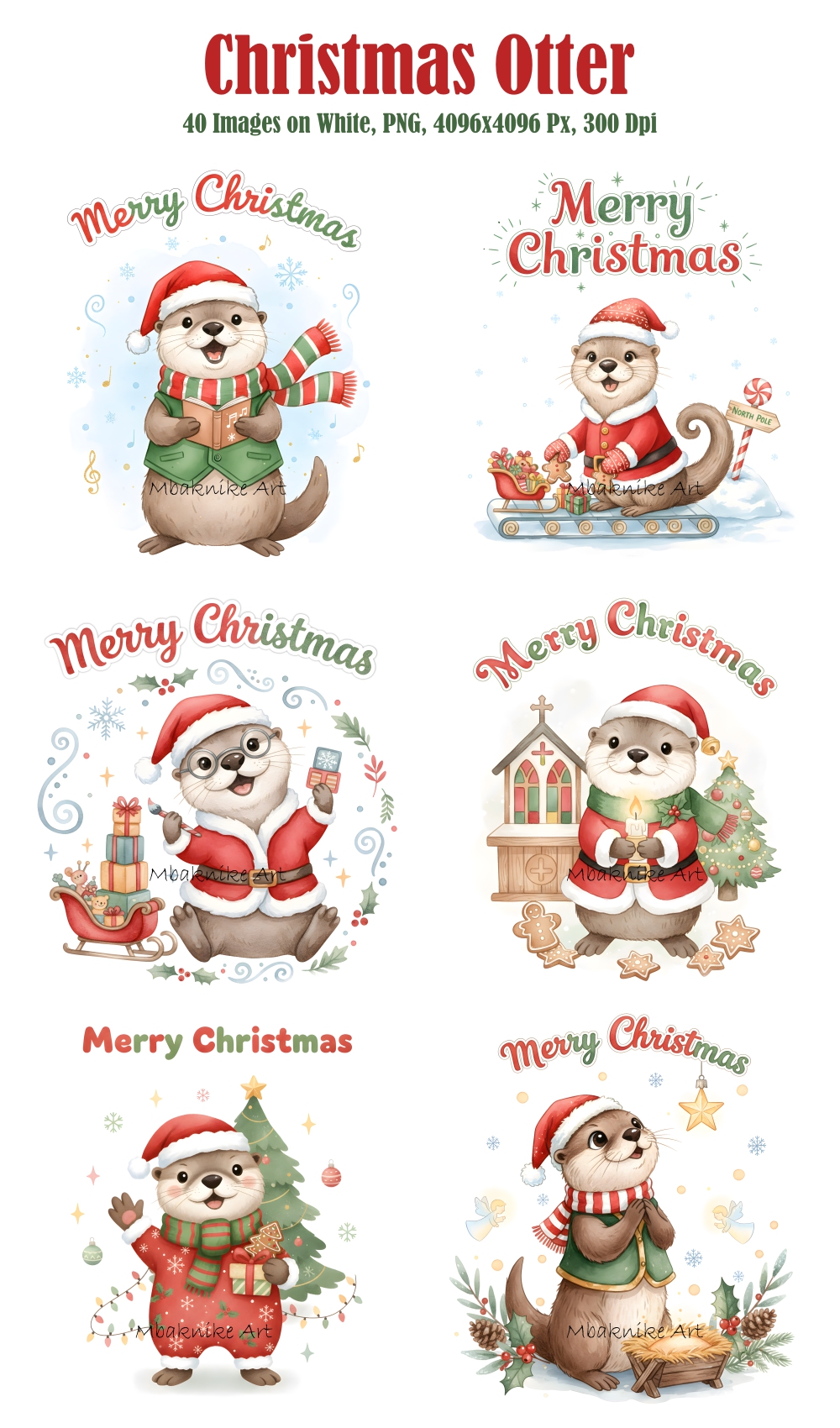 Transform your creative projects with our "Christmas Otter Clipart" collection! This digital pack includes 20 unique and whimsical images, each in PNG format with a white background at a high resolution of 300 dpi and 4096x4096 px.