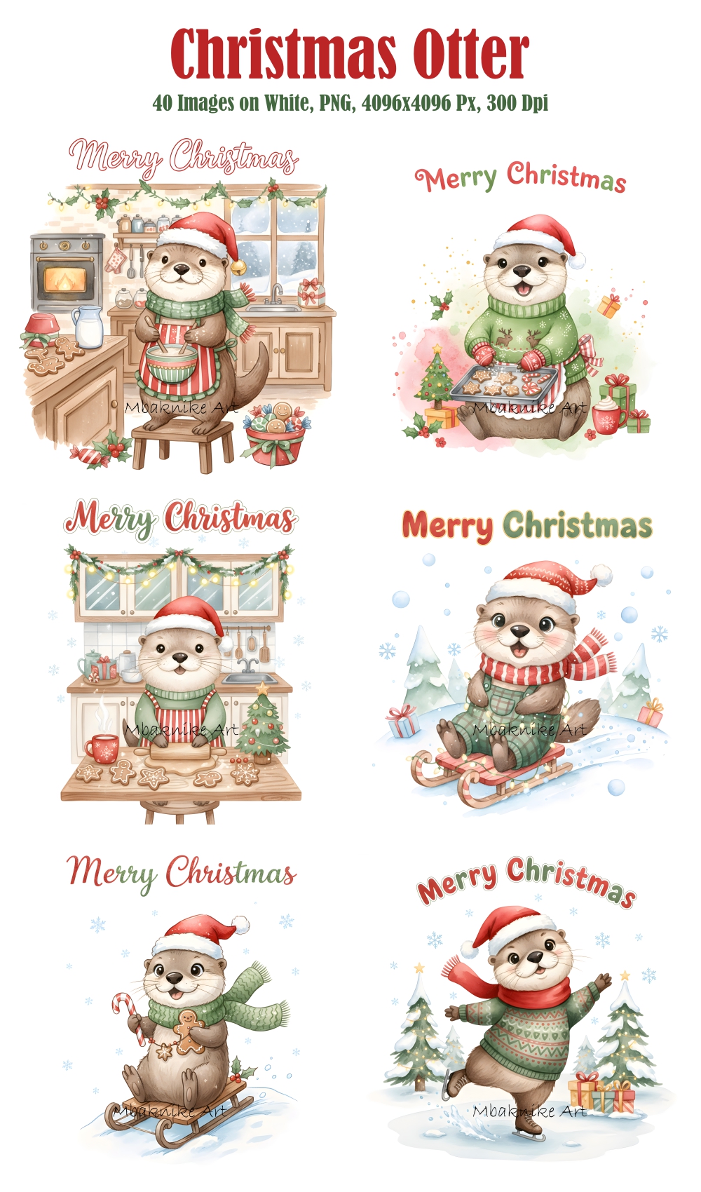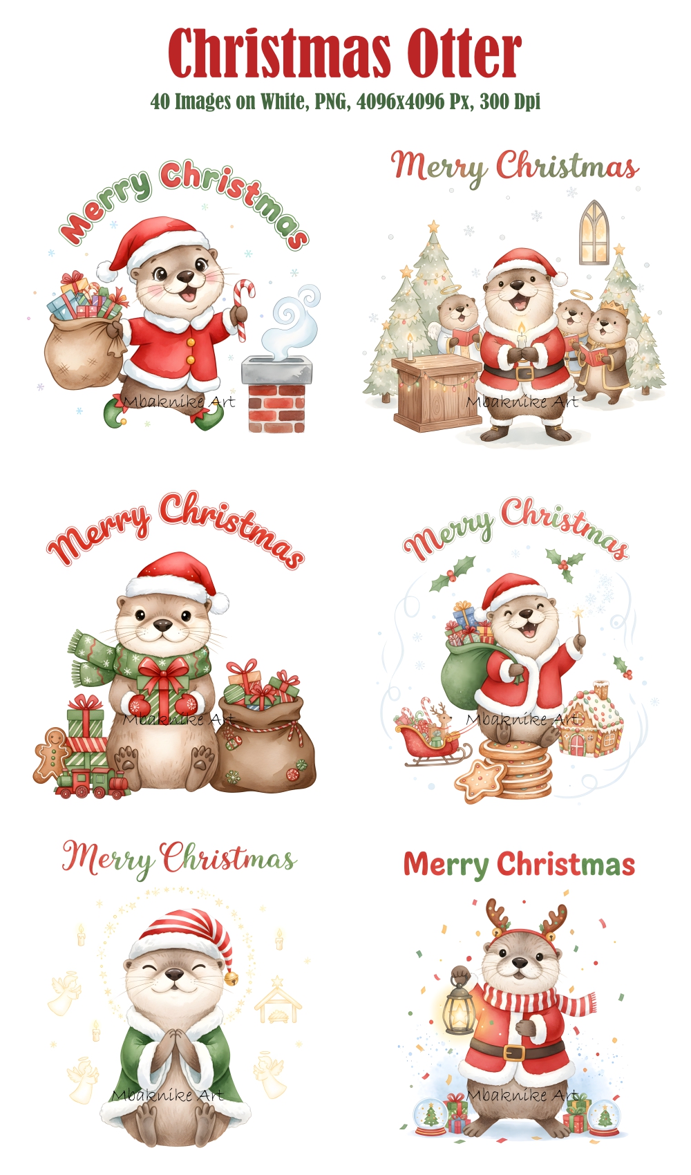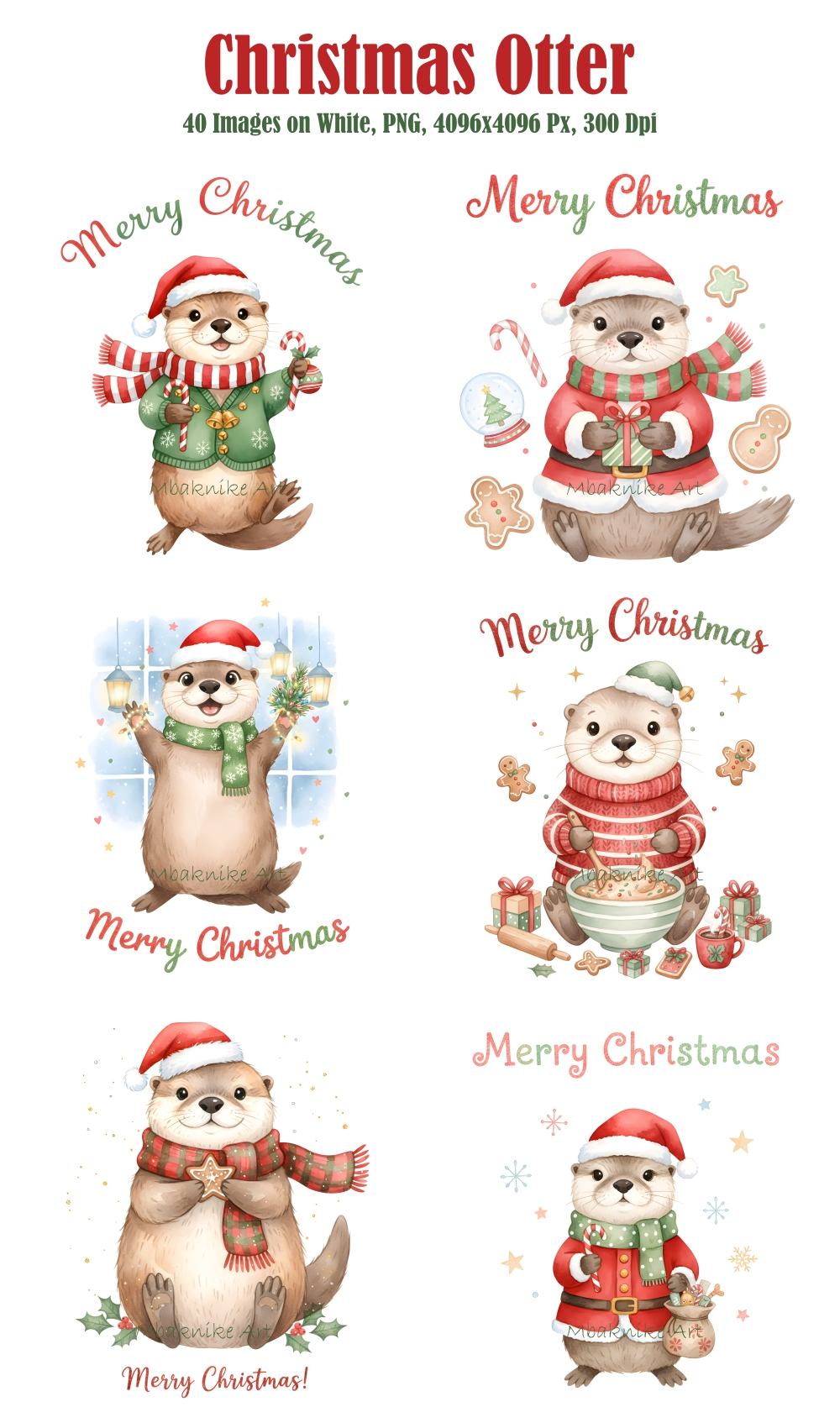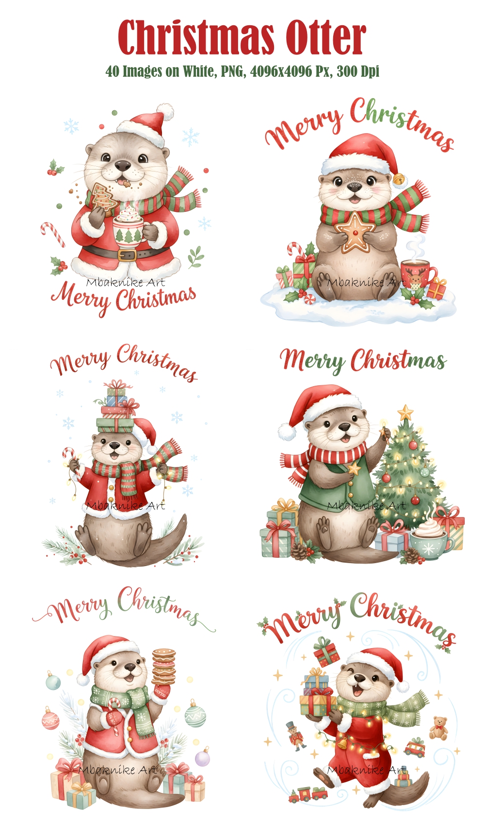 Transform your creative projects with our "Christmas Otter Clipart" collection! This digital pack includes 20 unique and whimsical images, each in PNG format with a white background at a high resolution of 300 dpi and 4096x4096 px.