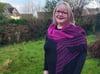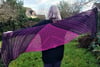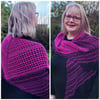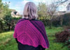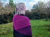 Trenant starts as a triangle and then transitions to a rectangle, making it a very versatile shape to wear as a shawl or a scarf. The sample uses two Zauberperlen rings but mini skeins can also be used.